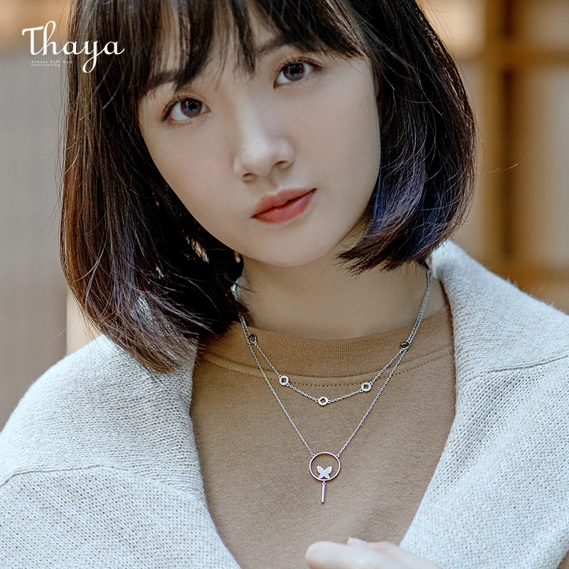 Thaya, оригинальный дизайн, китайский стиль, серебряное ожерелье, подвеска, розовый кристалл, Ожерелье 45 см для женщин, хорошее ювелирное изделие, подарок