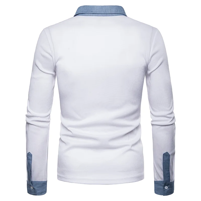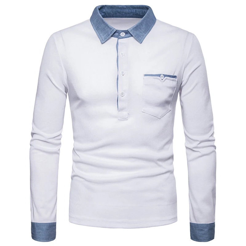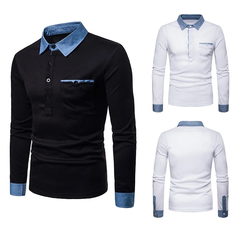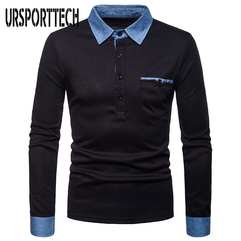 URSPORTTECH Мужская рубашка поло Весна Осень Повседневная с длинным рукавом джинсовый воротник дизайн рубашки поло мужской большой размер Топ тройник мужская одежда