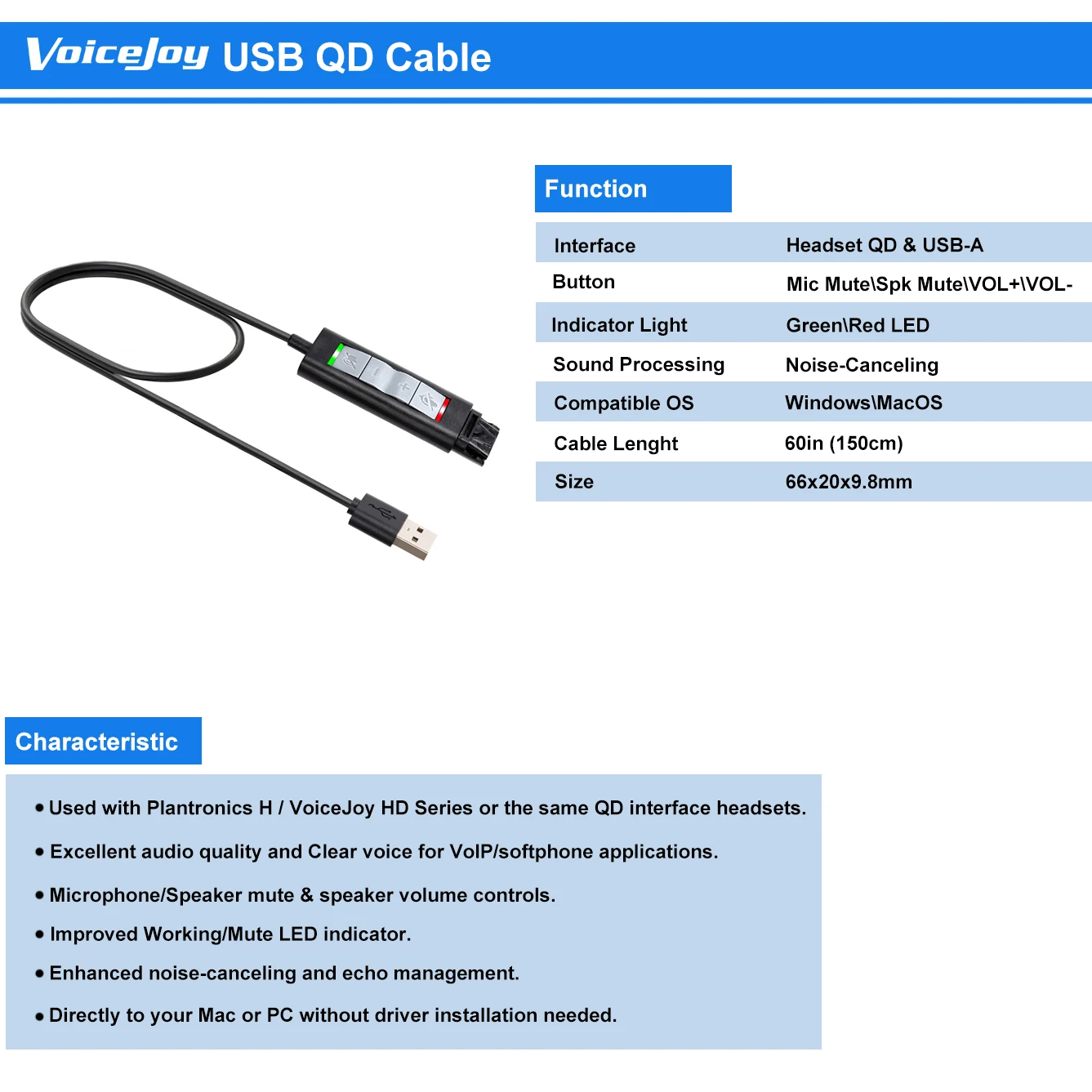 Переходник VoiceJoy QDUSB DA80, DA70, Heaset Quick отсоединить кабе...