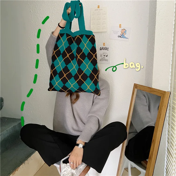 Классическая парусиновая сумка для девочек, шерстяная вязаная сумка...