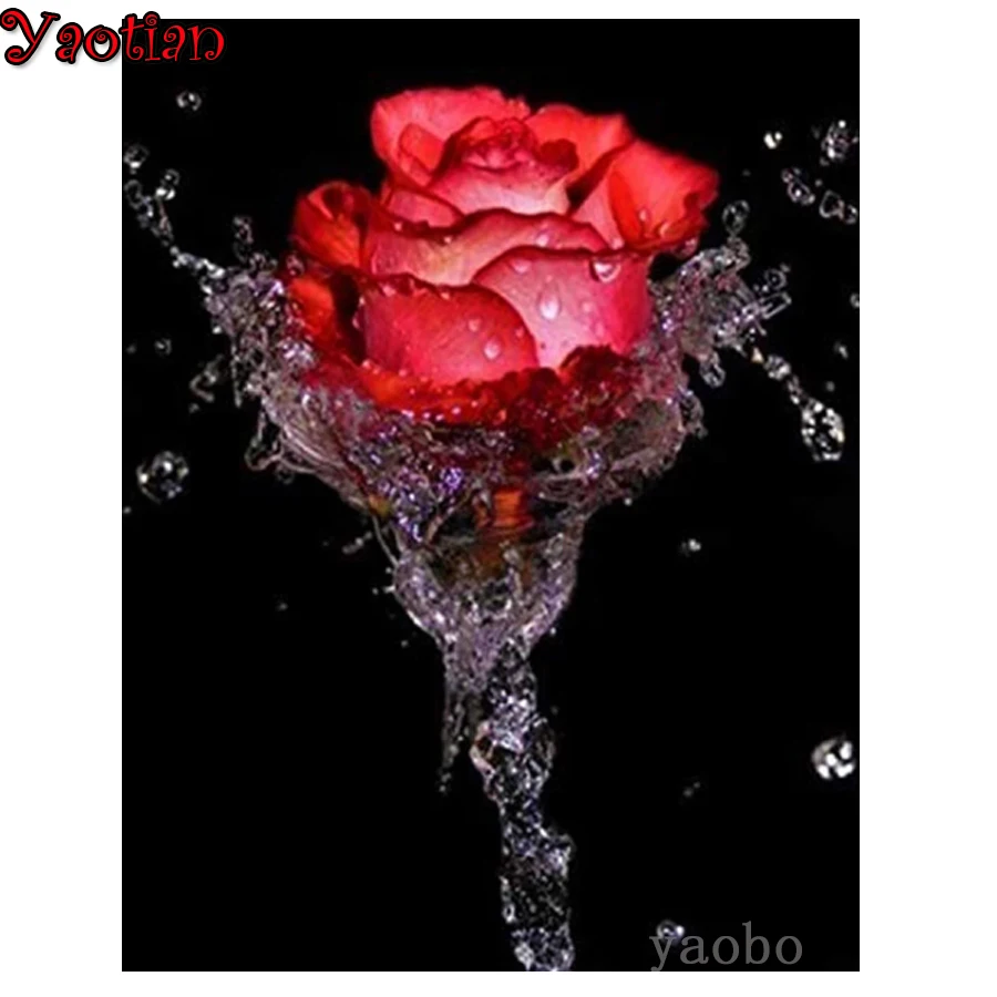 Алмазная живопись 5D "сделай сам", Красный цветок розы, капли воды, полная квадратная круглая вышивка алмазами, Набор для вышивки крестиком, Украшение стен