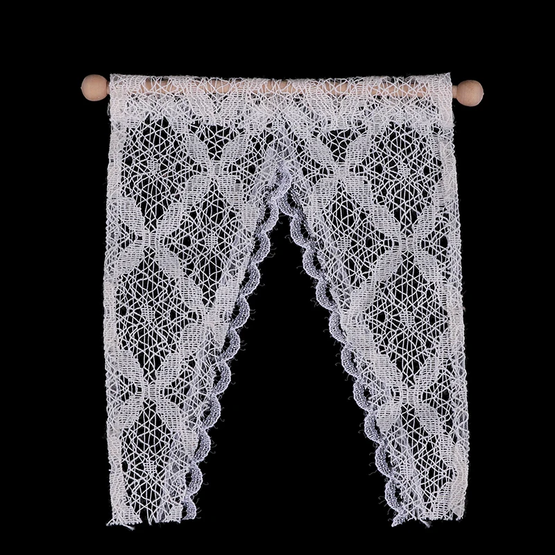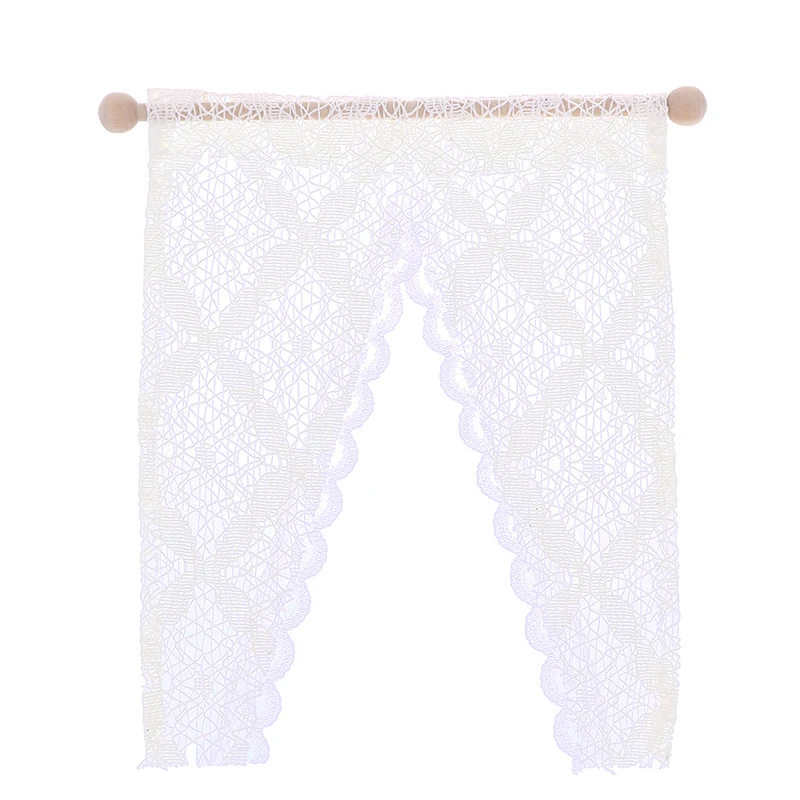 Аксессуары для кукол, миниатюрные кружевные занавески для кукольного домика с деревянным стержнем, декоративные игрушки для окон