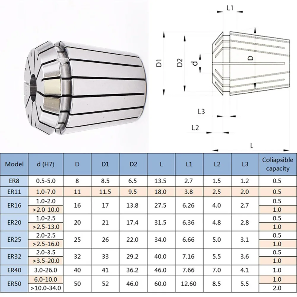 Прецизионный пружинный цанговый патрон ER11 ER16 ER20 ER25 ER32 ER ...