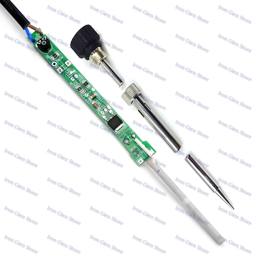 Электрический паяльник 220 В, 60 Вт, сварочная проволока, комплект 5 наконечников для припоя, регулируемая температура 200-450 град. с, внутренний нагрев, вилка европейского стандарта