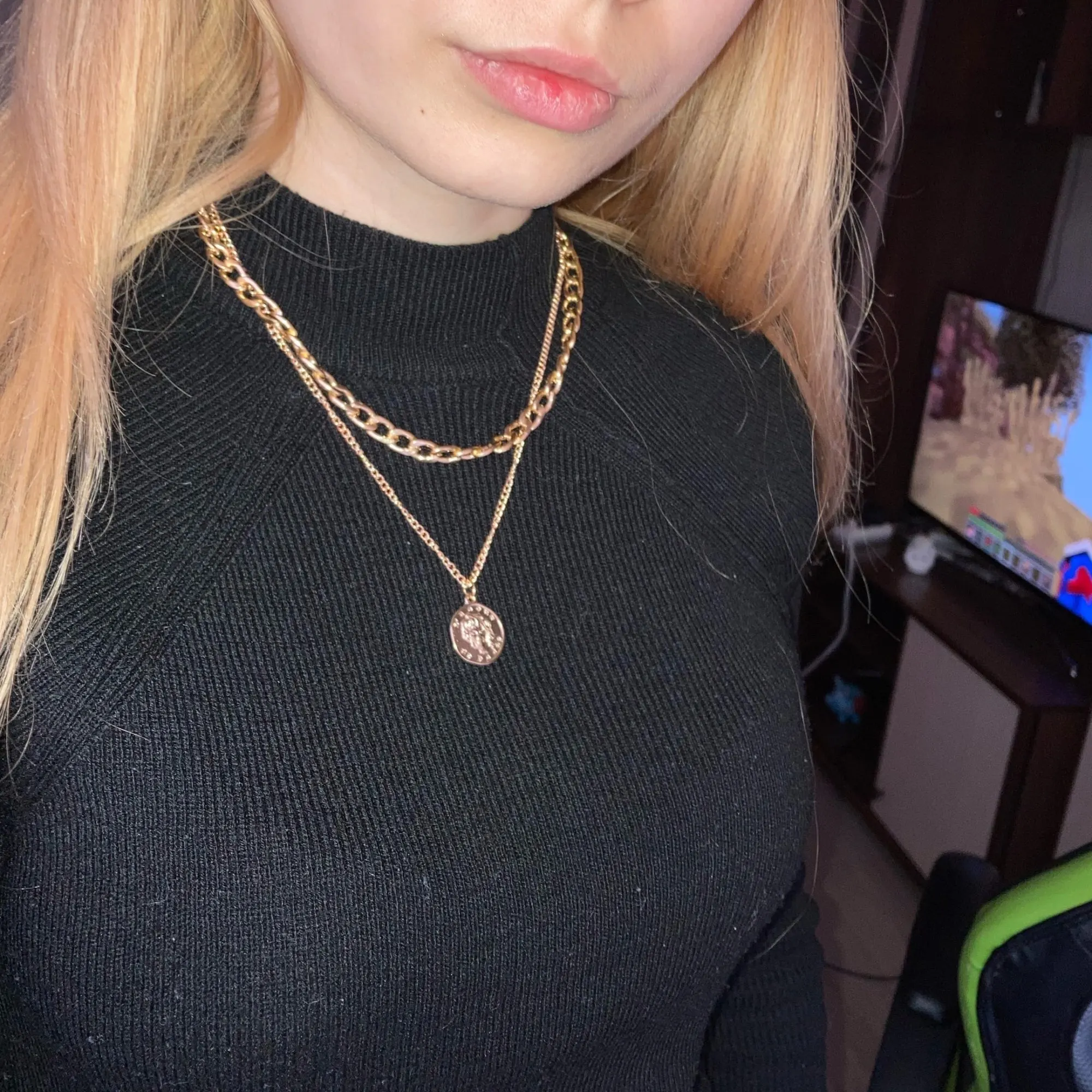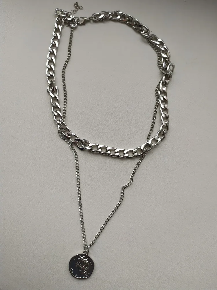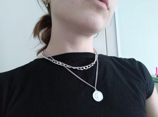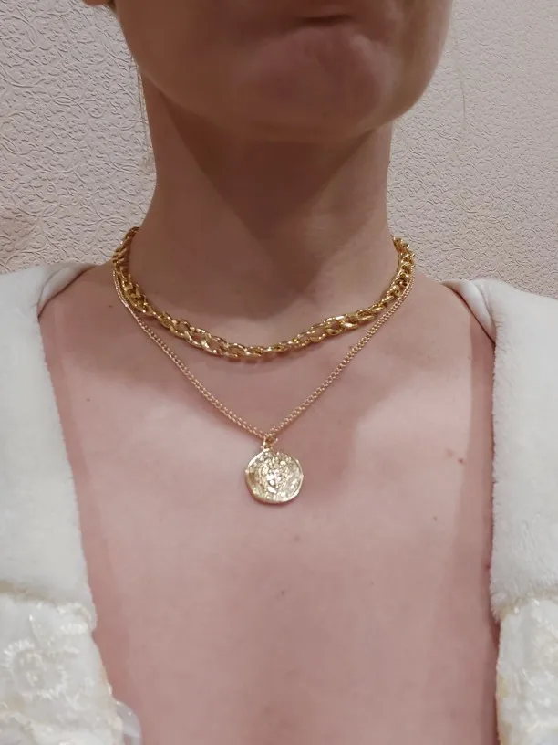 Очень тонкая и короткая цепочка, мне под горло. Не очень удобная