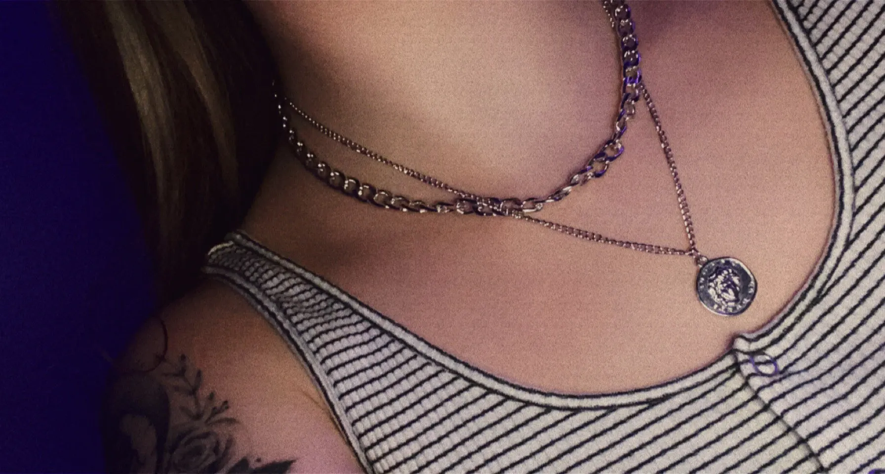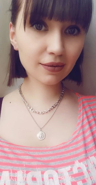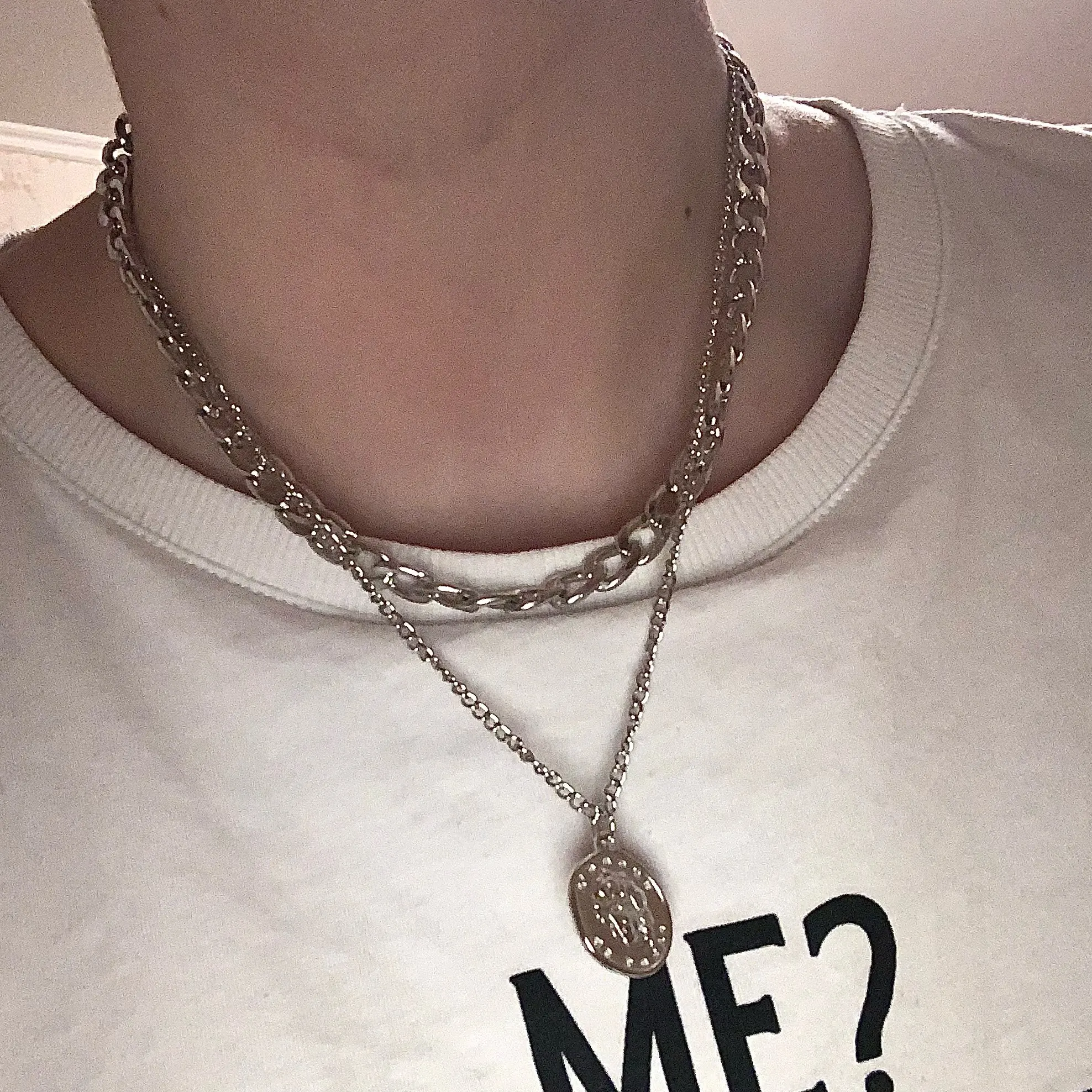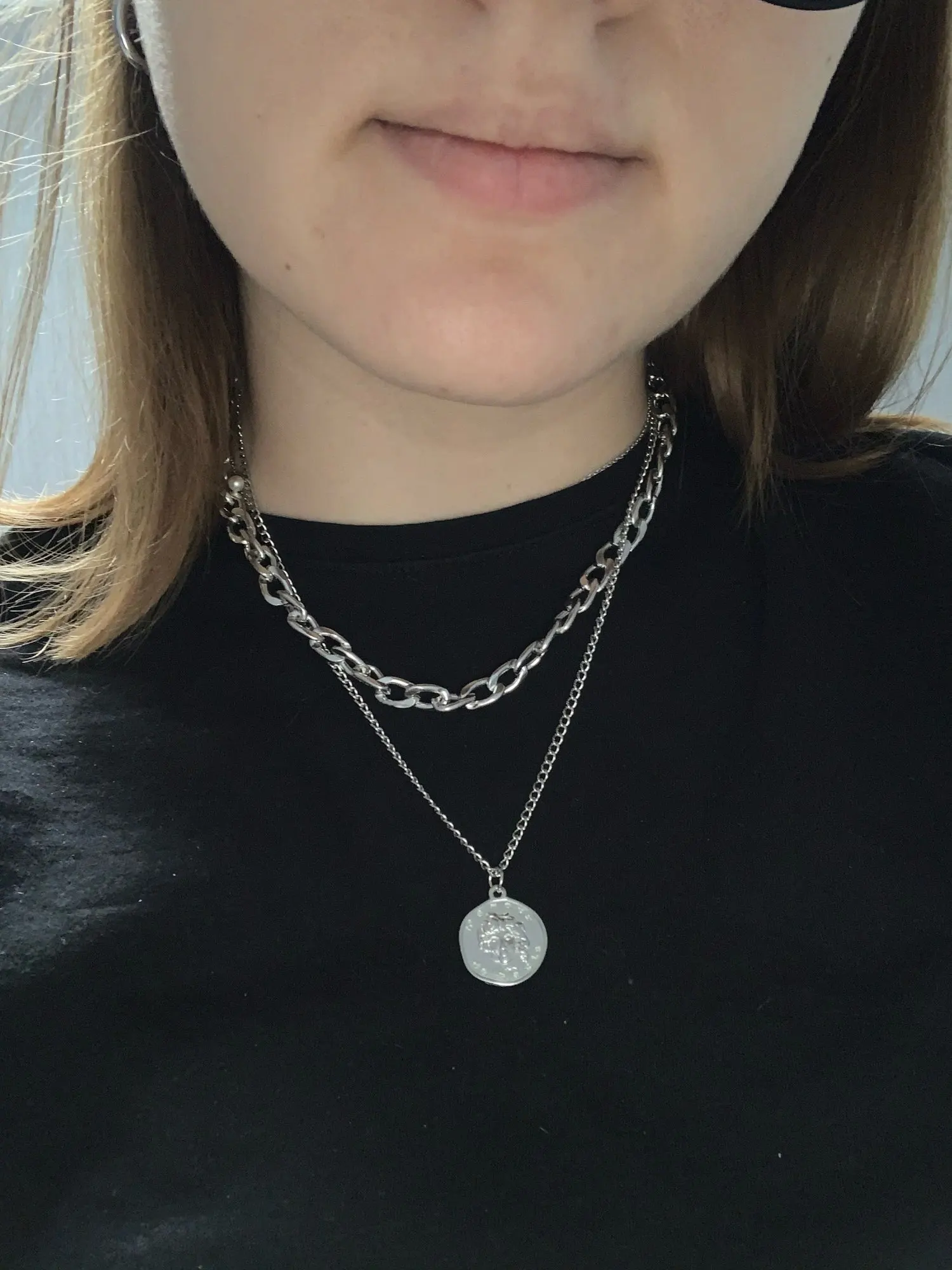 Очень тонкая и короткая цепочка, мне под горло. Не очень удобная