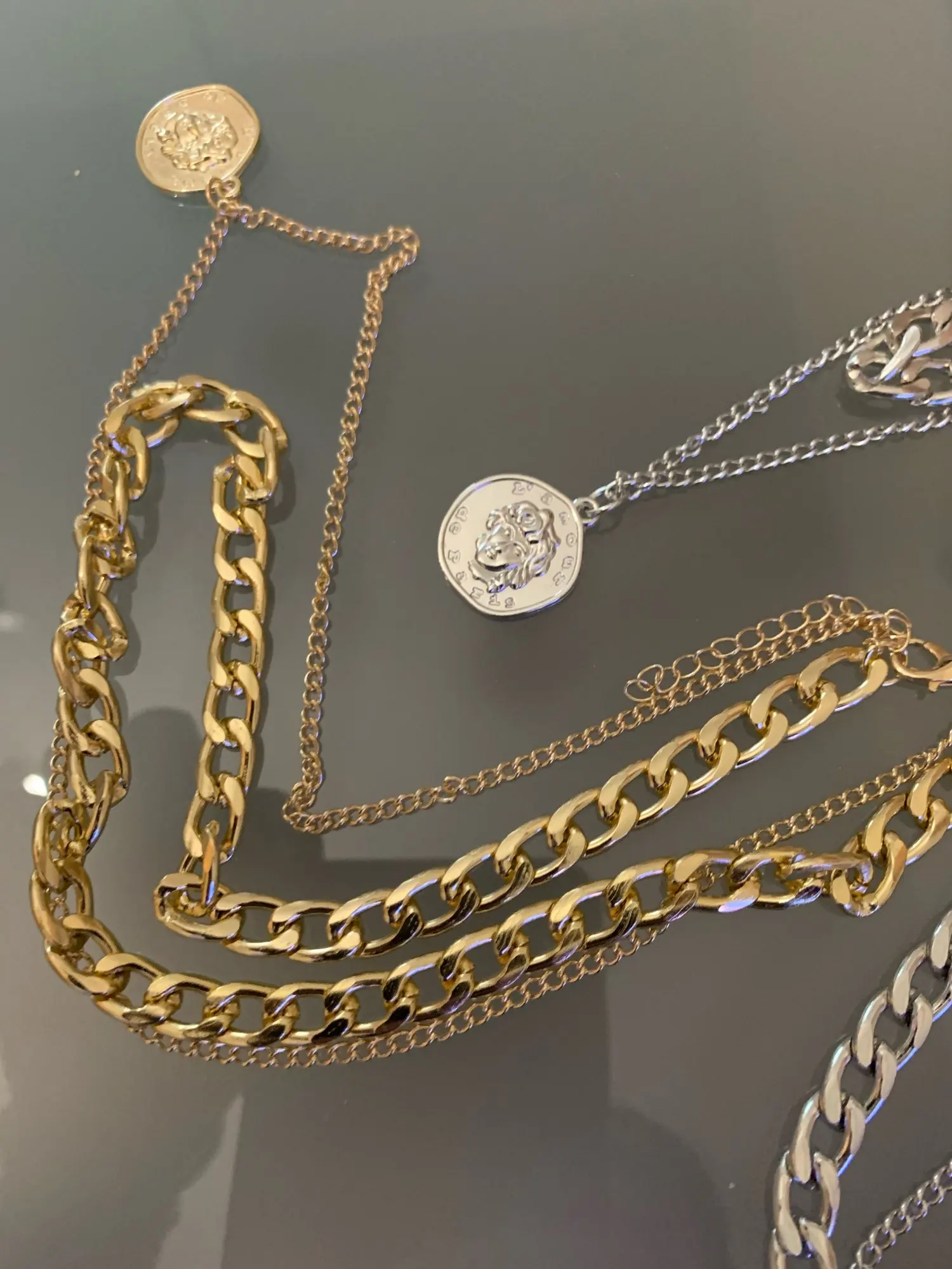 Цепочка-чокер Женская, многослойная, золотистаясеребристая