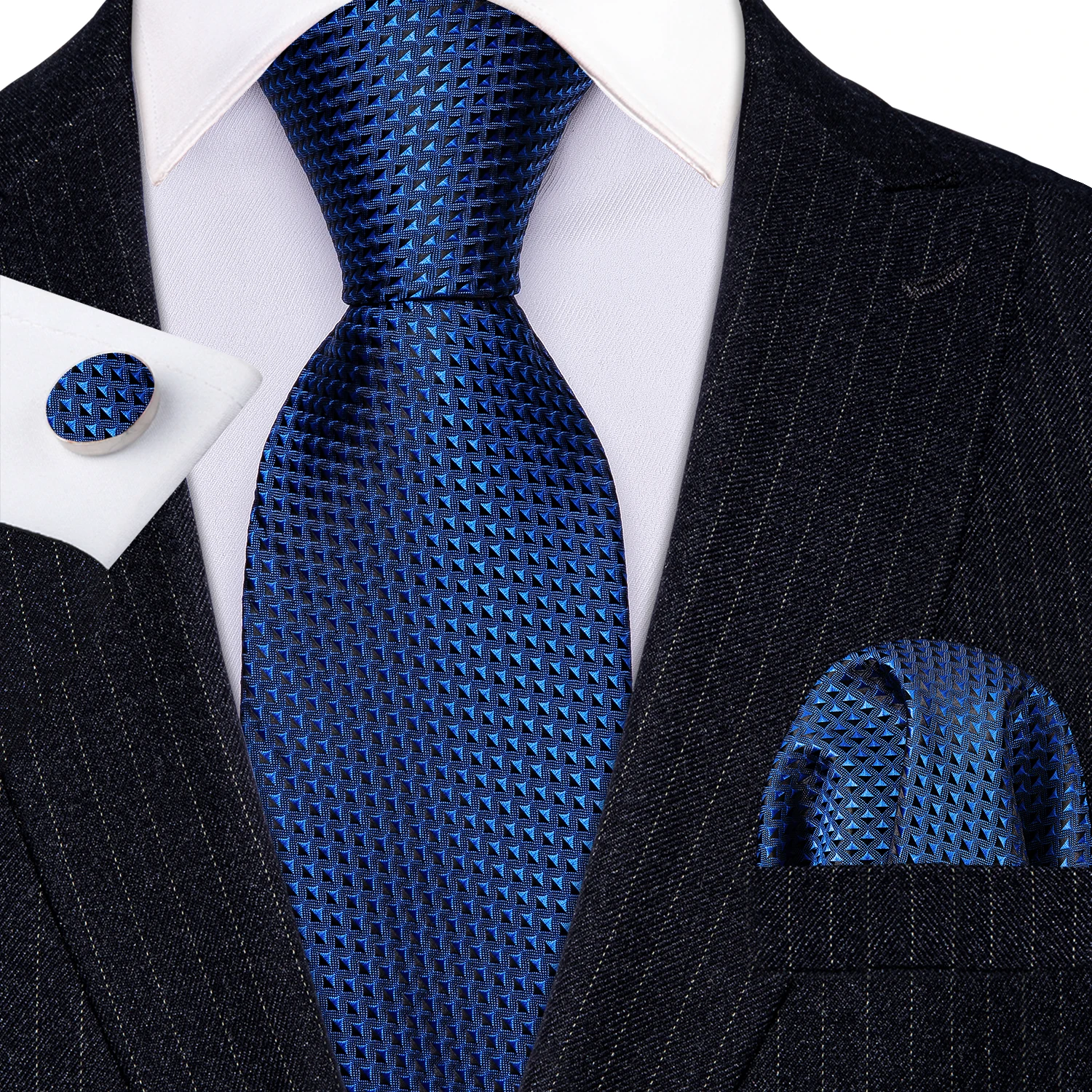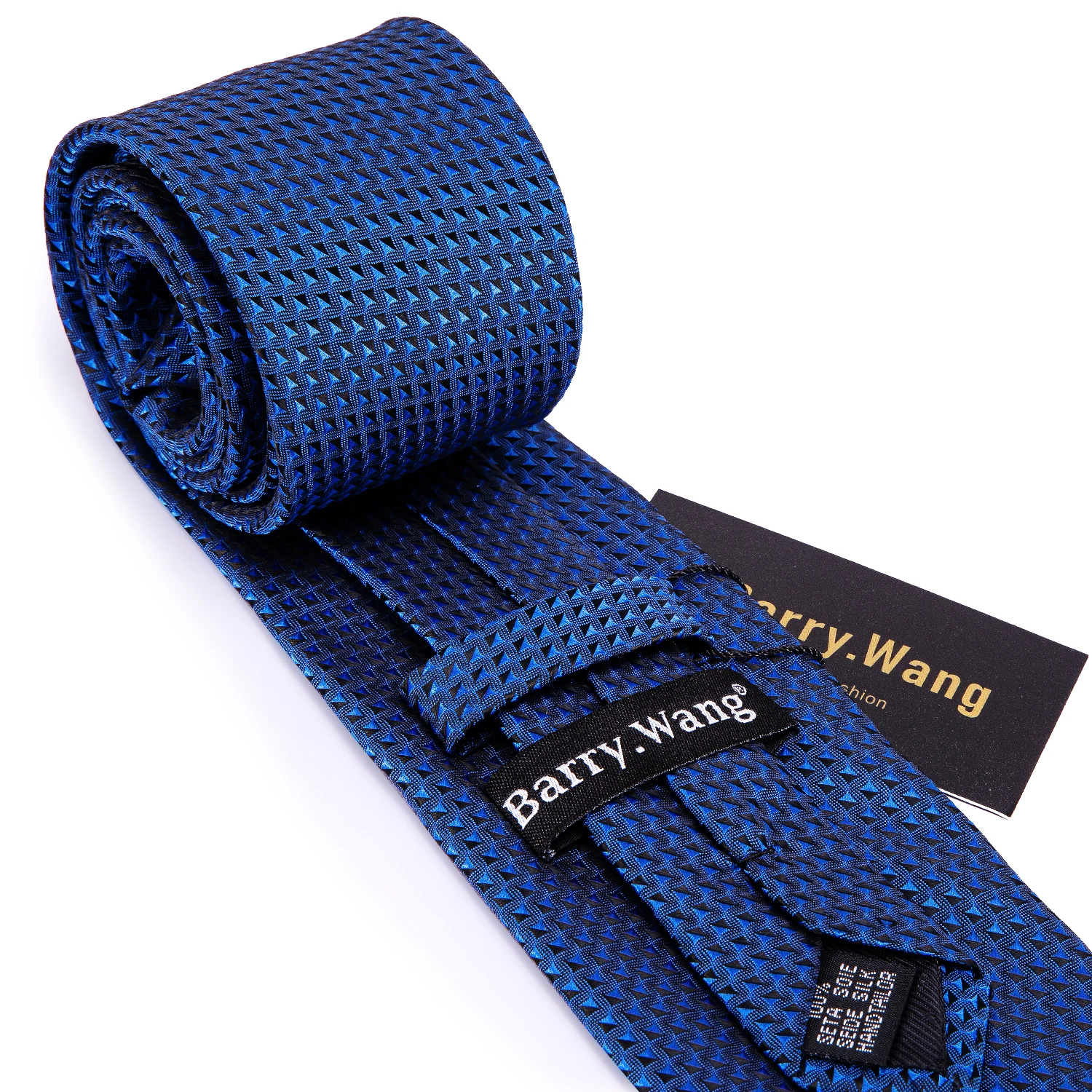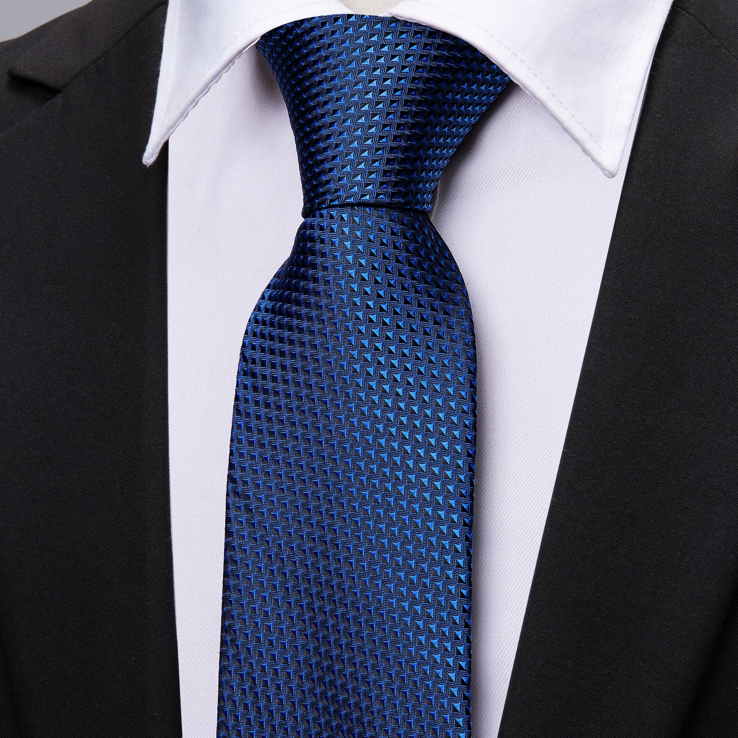 Галстук мужской из 100% шелка, синий, с геометрическим рисунком, Свадебный, LN-5313