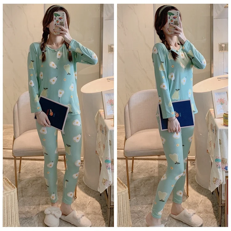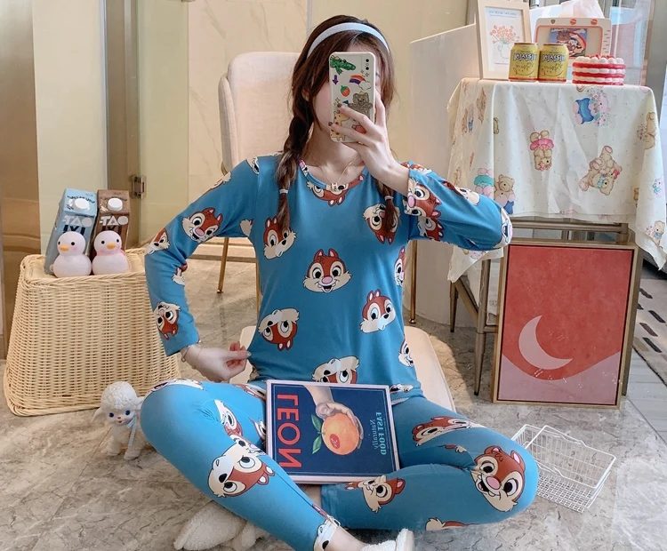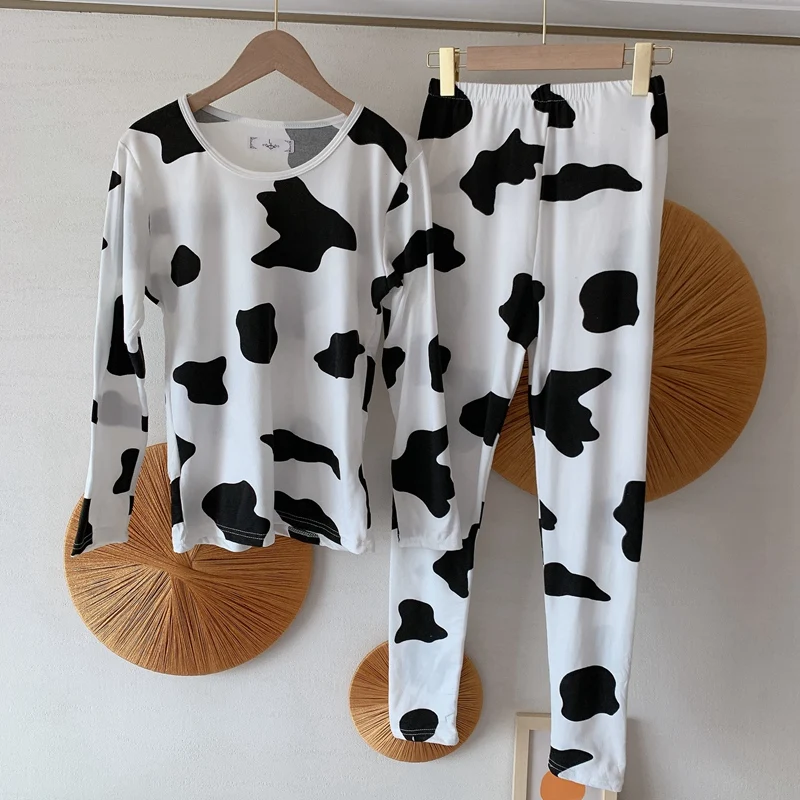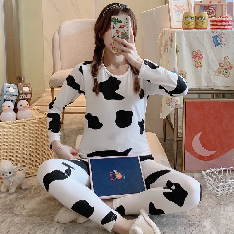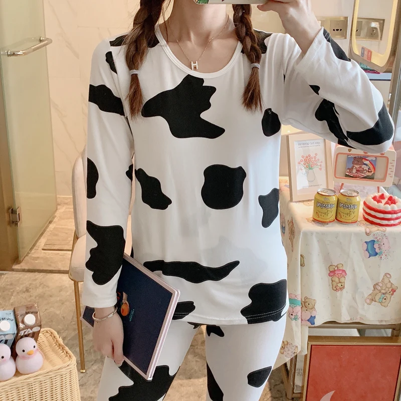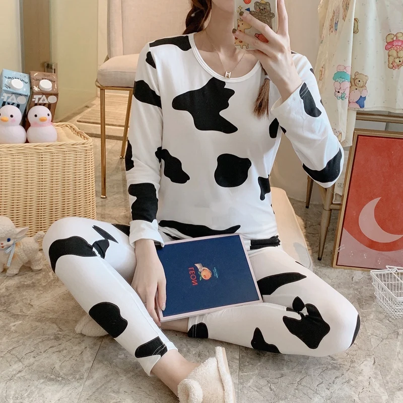 Размера плюс с длинным рукавом Термальность Body Shaper нижнее бельё для девочек женские осень-зима теплая верхняя одежда с принтом Корова пижамы, одежда для сна, костюм боди