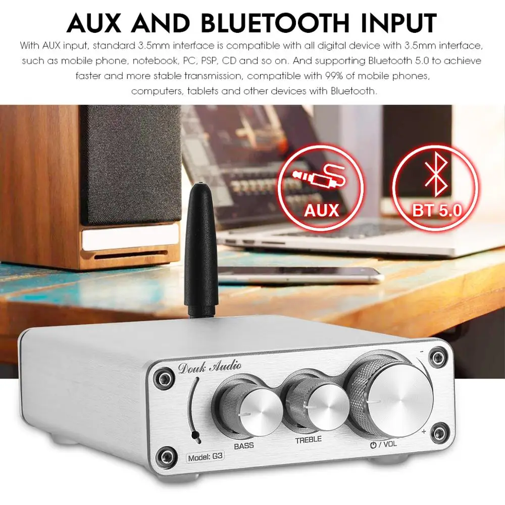 Douk Audio G3 Mini Bluetooth 5,0 TPA3116 цифровой усилитель HiFi 2,0 канальный стерео аудио усилитель с высокими басами управление тоном