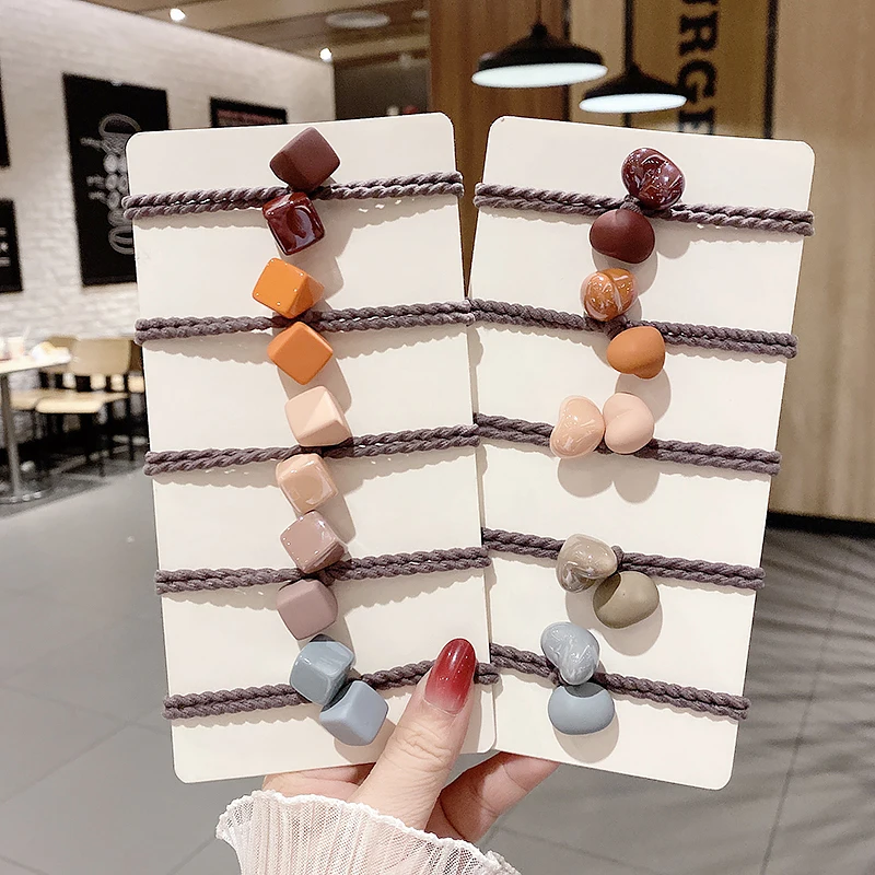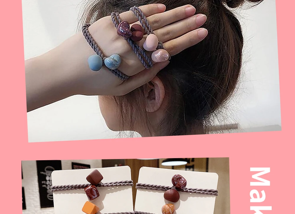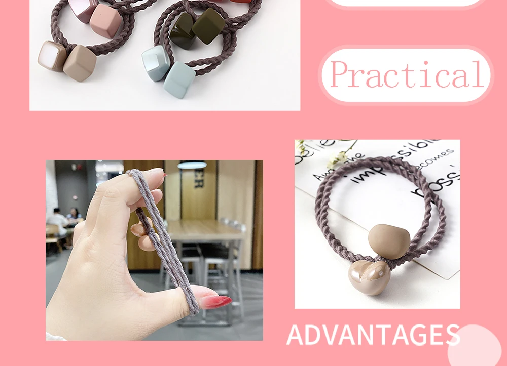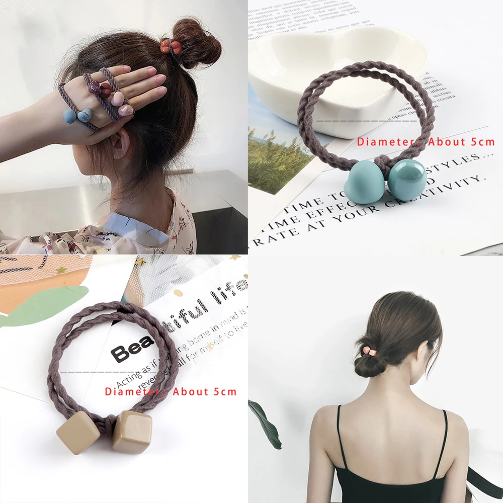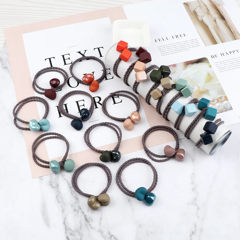 2 шт.компл. корейский резинки для волос матовый сердца кубик-подвеска, головной убор, высокое эластичные резинки для волос аксессуары для женщин и девочек держатель