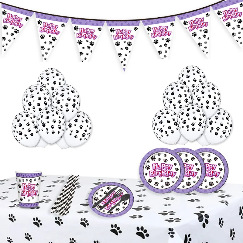 Одноразовая посуда для дня рождения на 10 человек, тарелка для салфеток в виде собачьих лап, чашки, декор для дня рождения, товары для 1 года, день рождения девочки мальчика