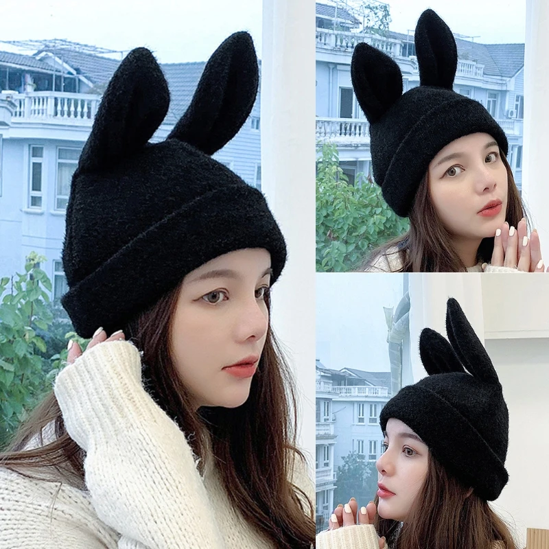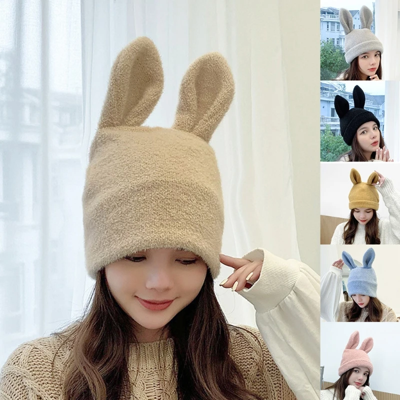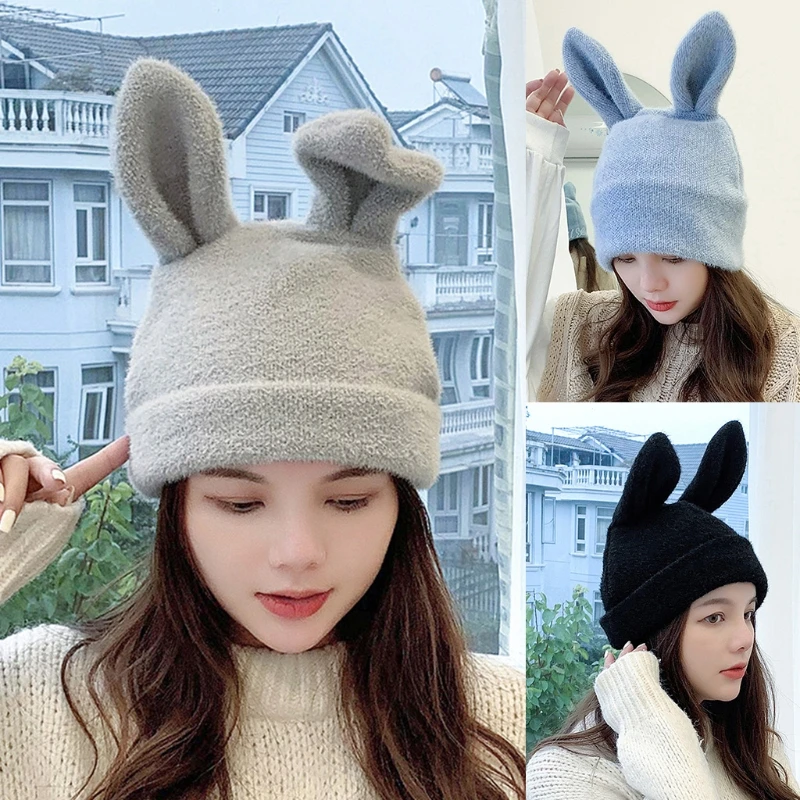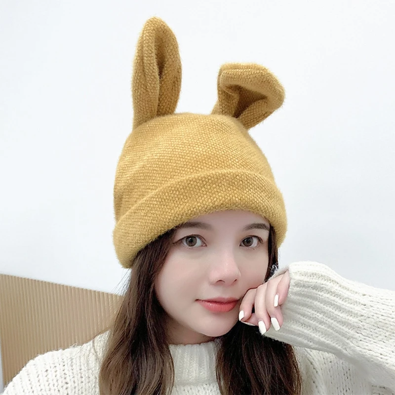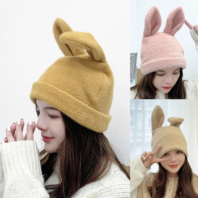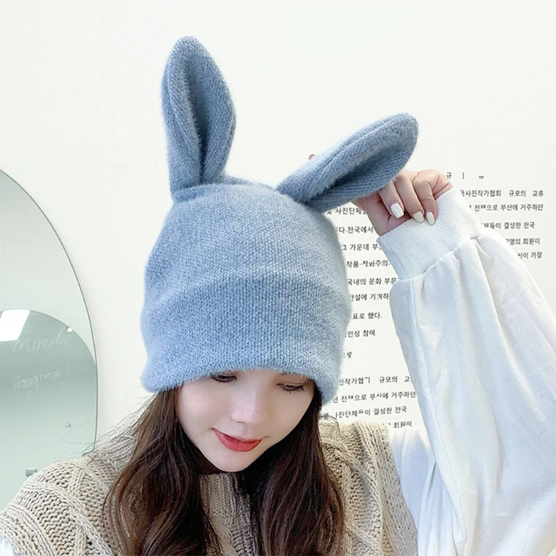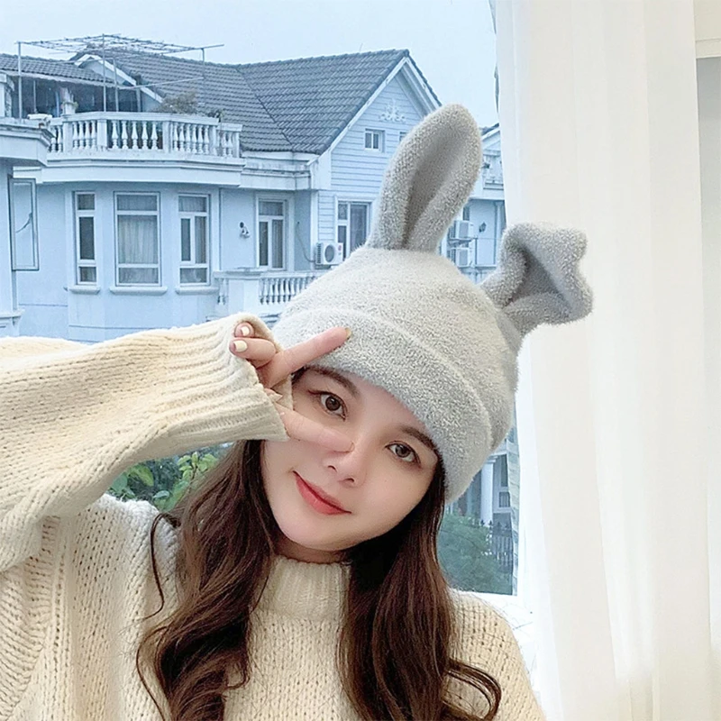 Женская зимняя вязаная Милая шапка бини с кроличьими ушками кролика однотонные уличные эластичные лыжные шапочки шапка ушные теплые фото реквизиты