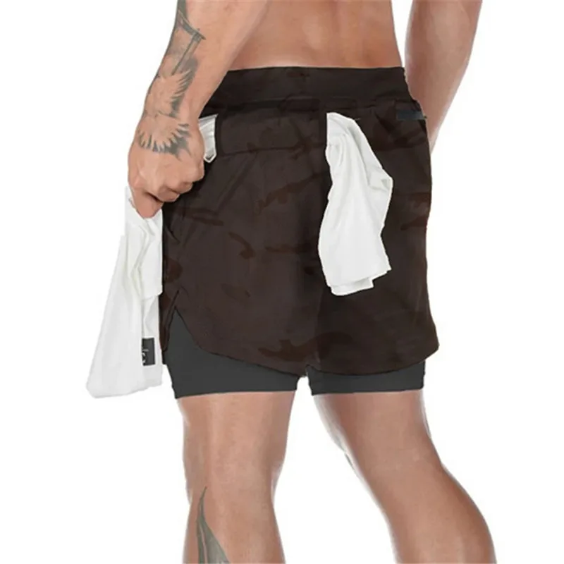 Мужские шорты для бега 2 в 1, камуфляжные, быстросохнущие, 2 в 1, д...