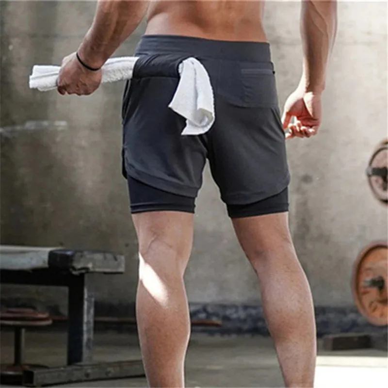 Шорты мужские спортивные быстросохнущие для бега и фитнеса, 2 в 1