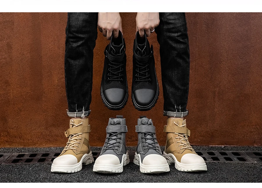 Модные мужские военные ботинки, уличная холщовая обувь с высоким бе...