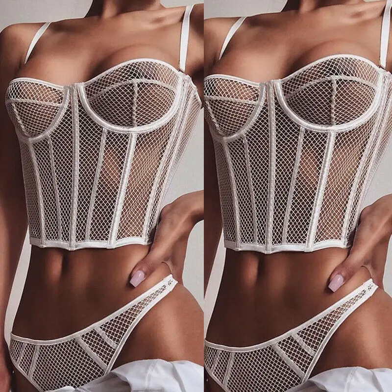 Комплект сексуального женского кружевного нижнего белья, прозрачный...
