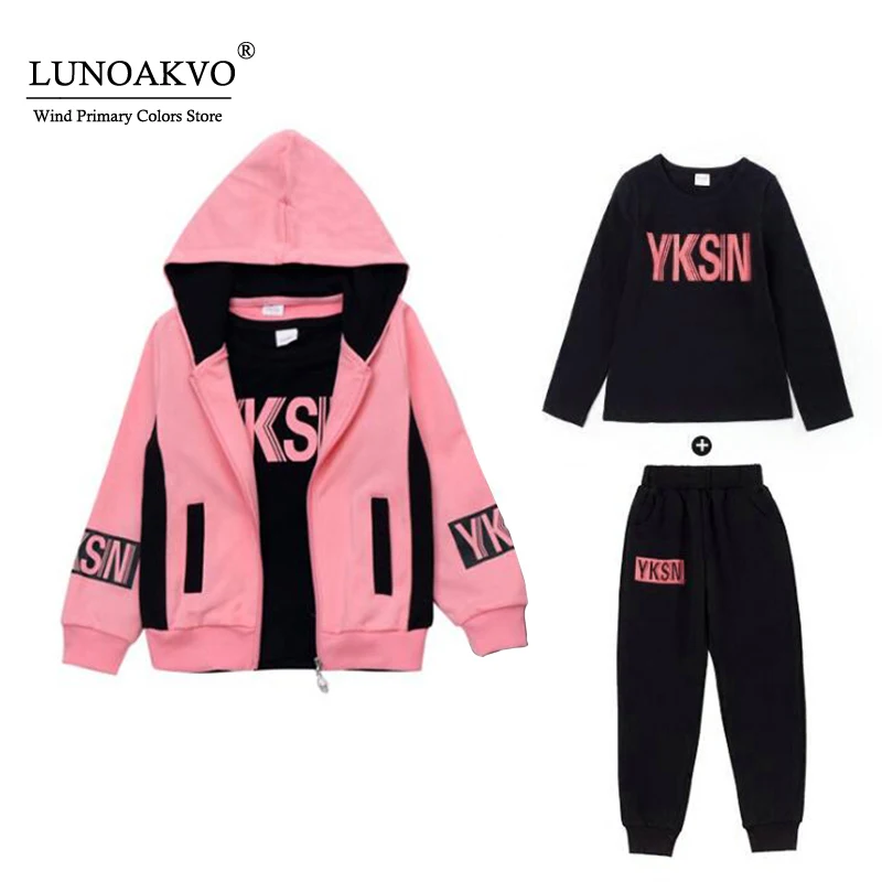 Спортивный костюм Lunoakvo для девочек, 3 шт.компл., детская одежда, толстовка, футболка, штаны, спортивный костюм для детей 5, 6, 8, 9, 10, 12, 13 лет