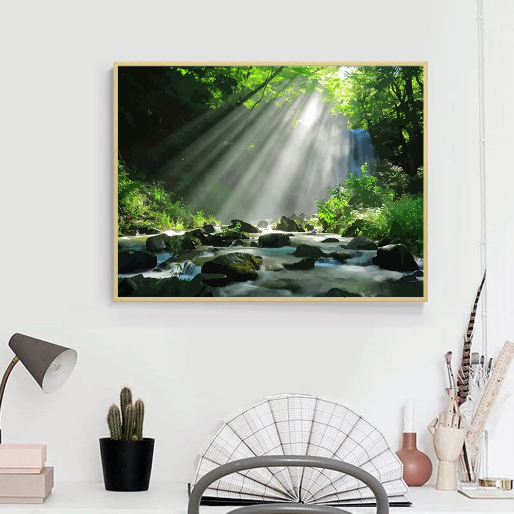Картина AZQSD по номерам картины холст водопад пейзаж DIY Безрамная...