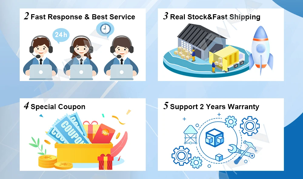 Наша продукция имеет 2 года гарантии, по любым вопросам, пожалуйста, оставьте нам сообщение, и наша команда послепродажного обслуживания будет готова поддержать вас в любое время