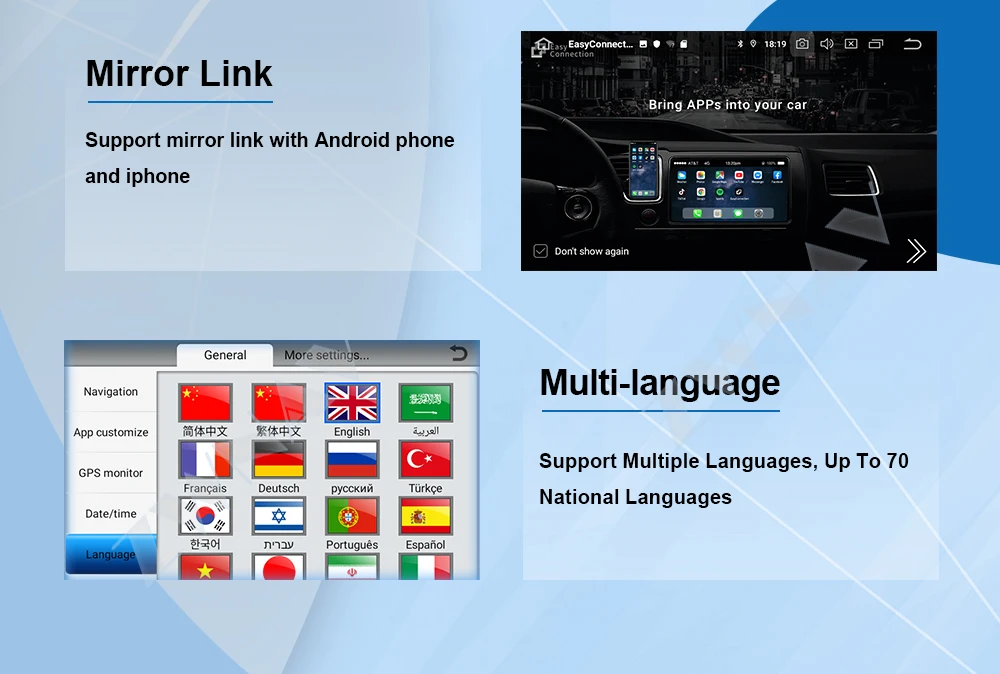 Это plug and play для установки, но мы предлагаем вам найти местного профессионального инженера по установке или автомобиля a & V магазин для установки нашего блока в вашем автомобиле, чтобы избежать возможных повреждений приборной панели и самого головного устройства. Конечно, если вам нужна любая поддержка, вы можете свободно связаться с нами.