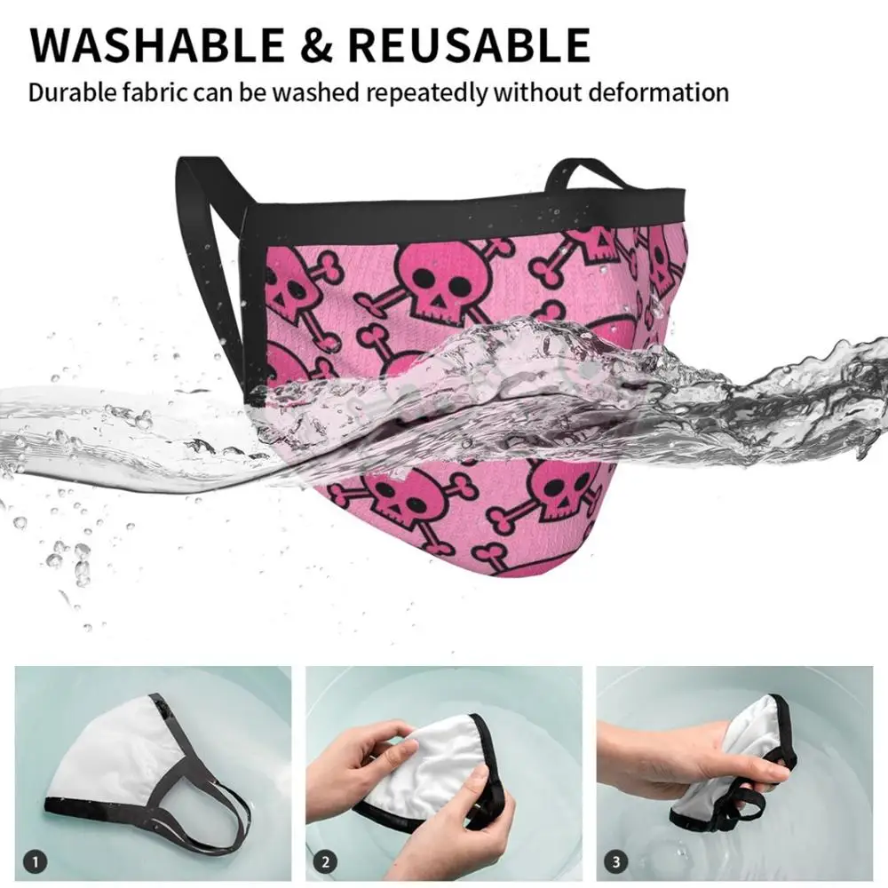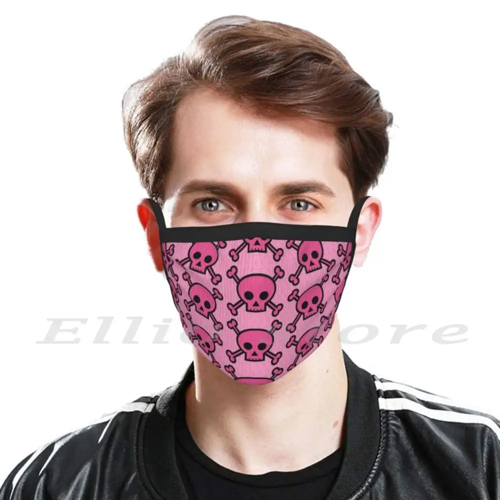Многоразовая теплая маска с розовым черепом и скрещенными костями эмо, с забавным принтом для девочек, в стиле панк-рок