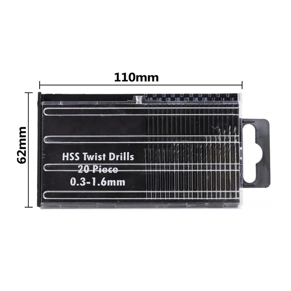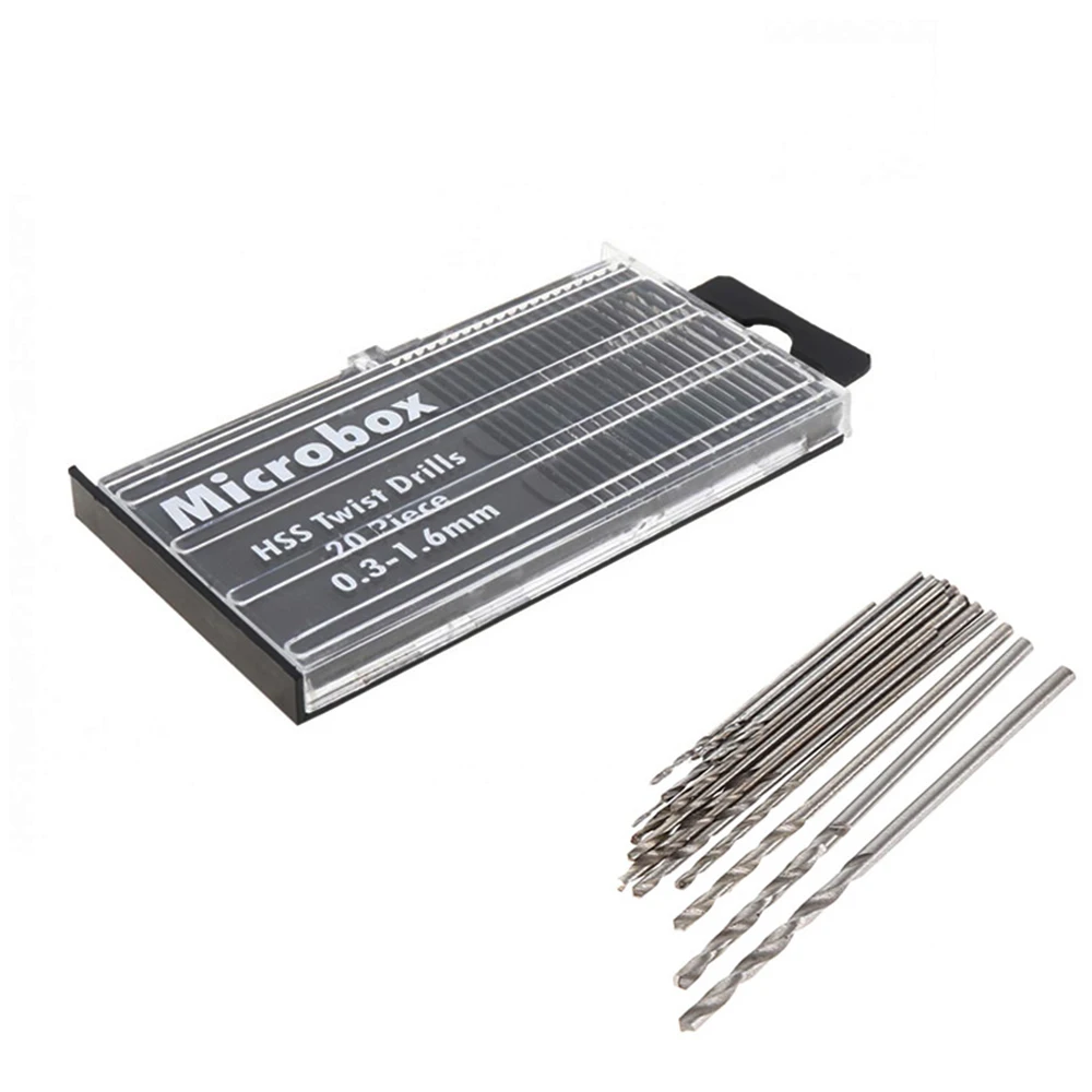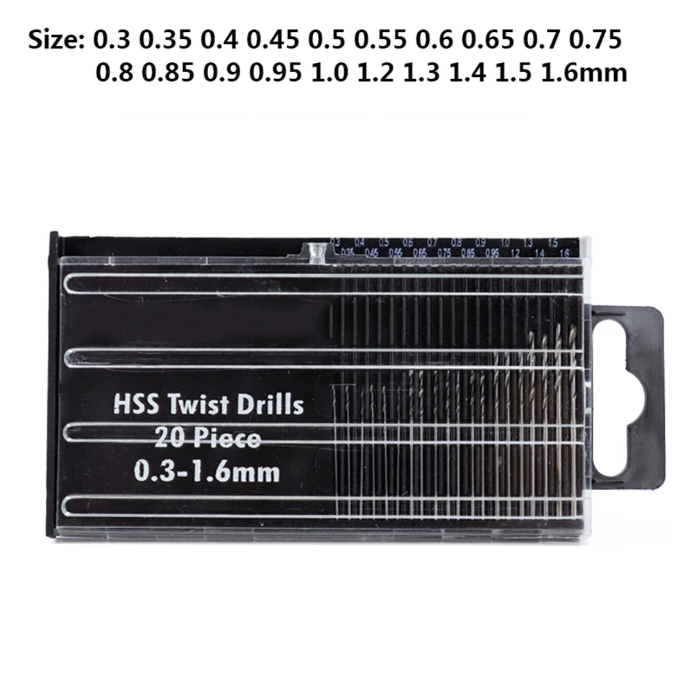 Сверла по металлу 20 штук HSS сверла набор 0,3-1,6 мм микро ручных дрелей для модель для металлообработки ремесло Инструменты для ремонта мини буровая установка