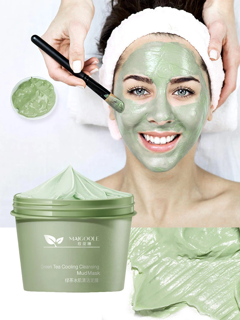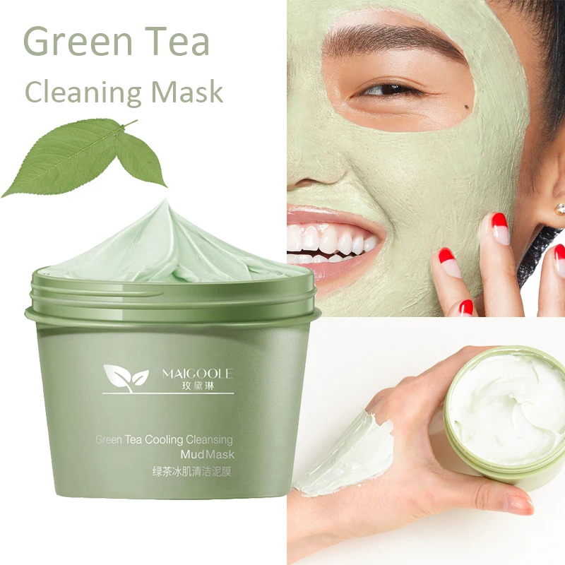 Маска для лица с зеленым чаем для глубокой очистки кожи, Очищающая маска для лица от прыщей, черных точек, грязи, 100 г