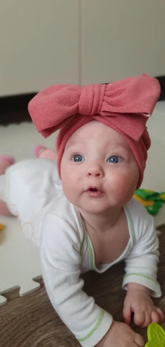очень милая шапочка ! тянется хорошо! подкладки нет, но она мягкая, без трущих и царапающих элементов и ребёнку комфортно. на 7 месяцев сидит в самый раз. думаю подойдёт и на возраст с 4-5 месяцев и до 8-9 с учётом запаса растяжения ткани.