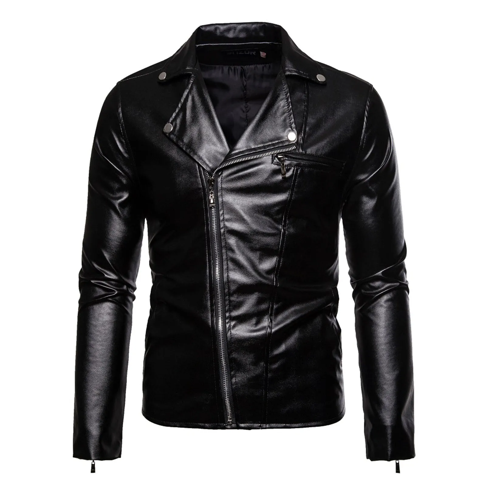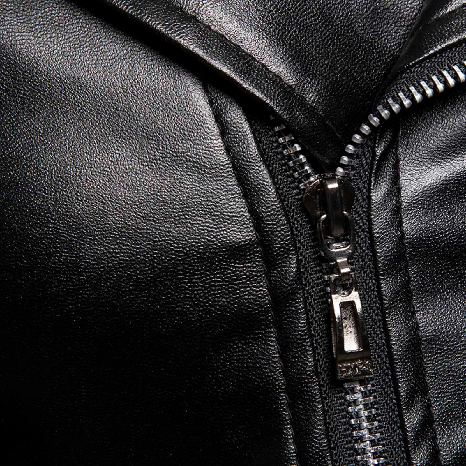 Зимняя мужская повседневная мотоциклетная кожаная куртка с воротником-стойкой