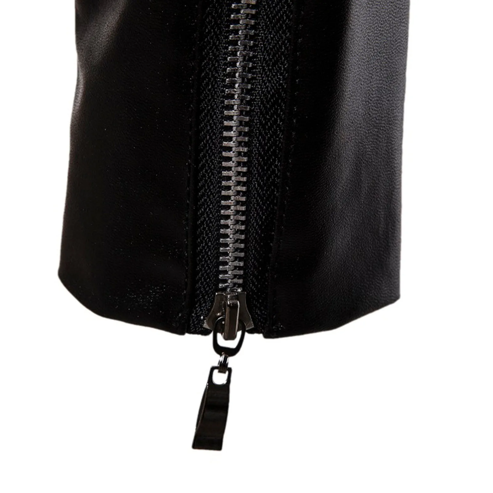 Куртка мужская кожаная на молнии, модная повседневная однотонная пр...
