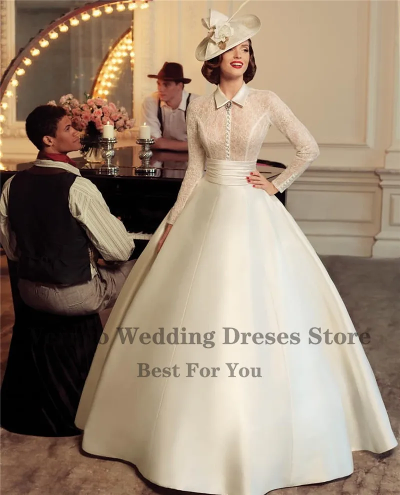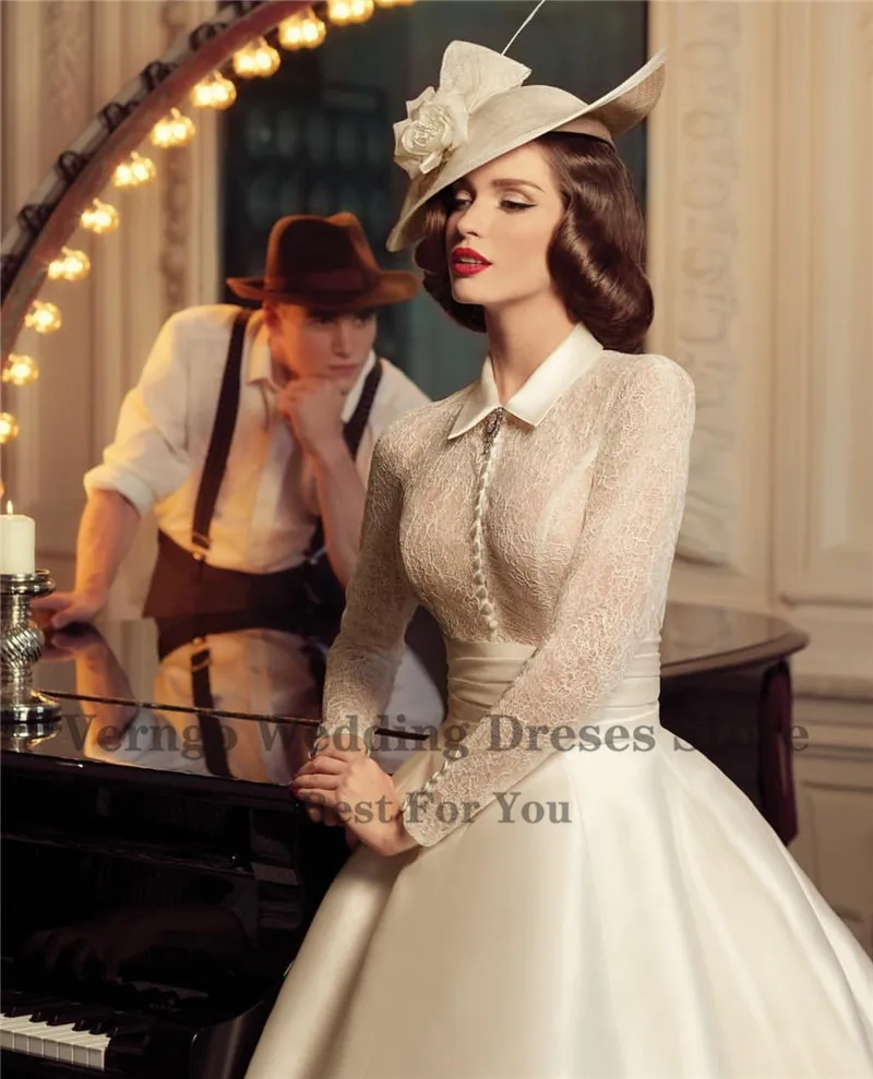 Корейское кружевное свадебное платье Verngo в стиле ретро с длинными рукавами, атласное Открытое платье с буффами, модель 2021 года, платье для невесты, наряд для двора, индивидуальный пошив