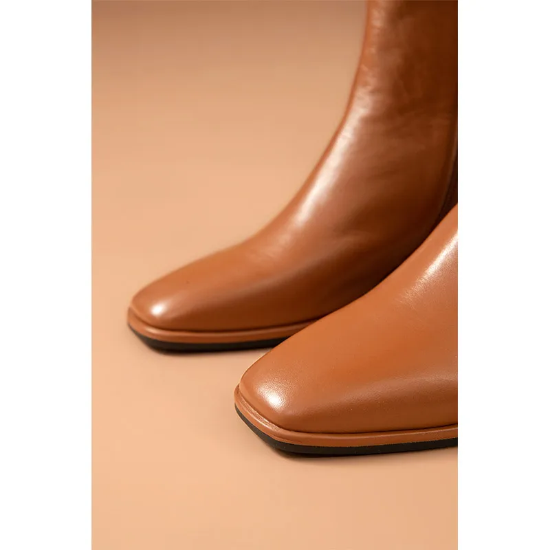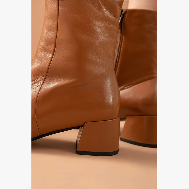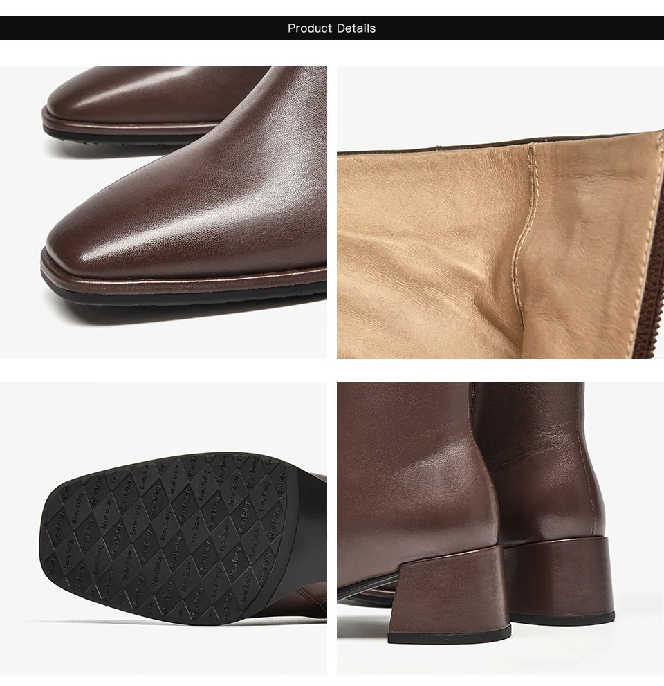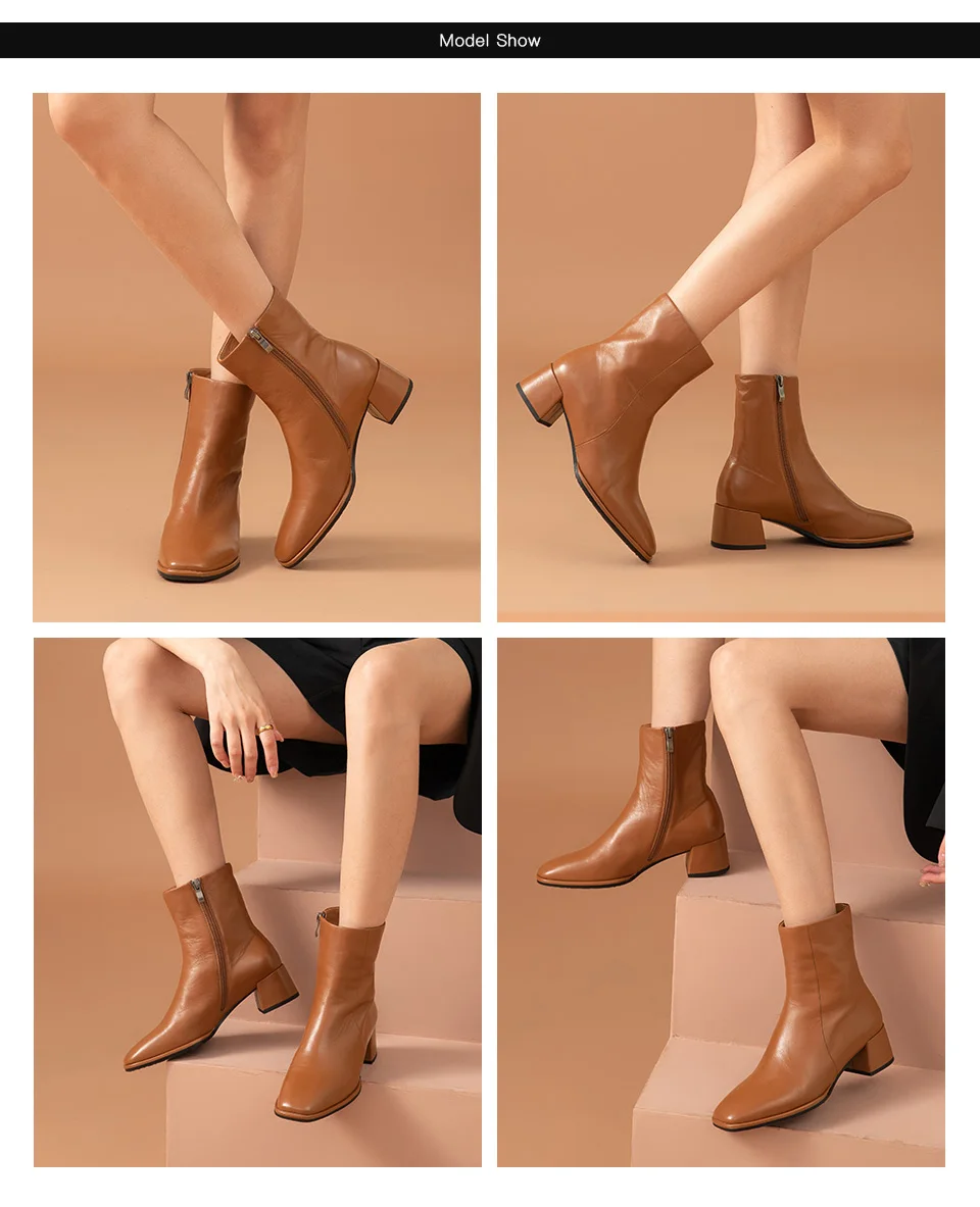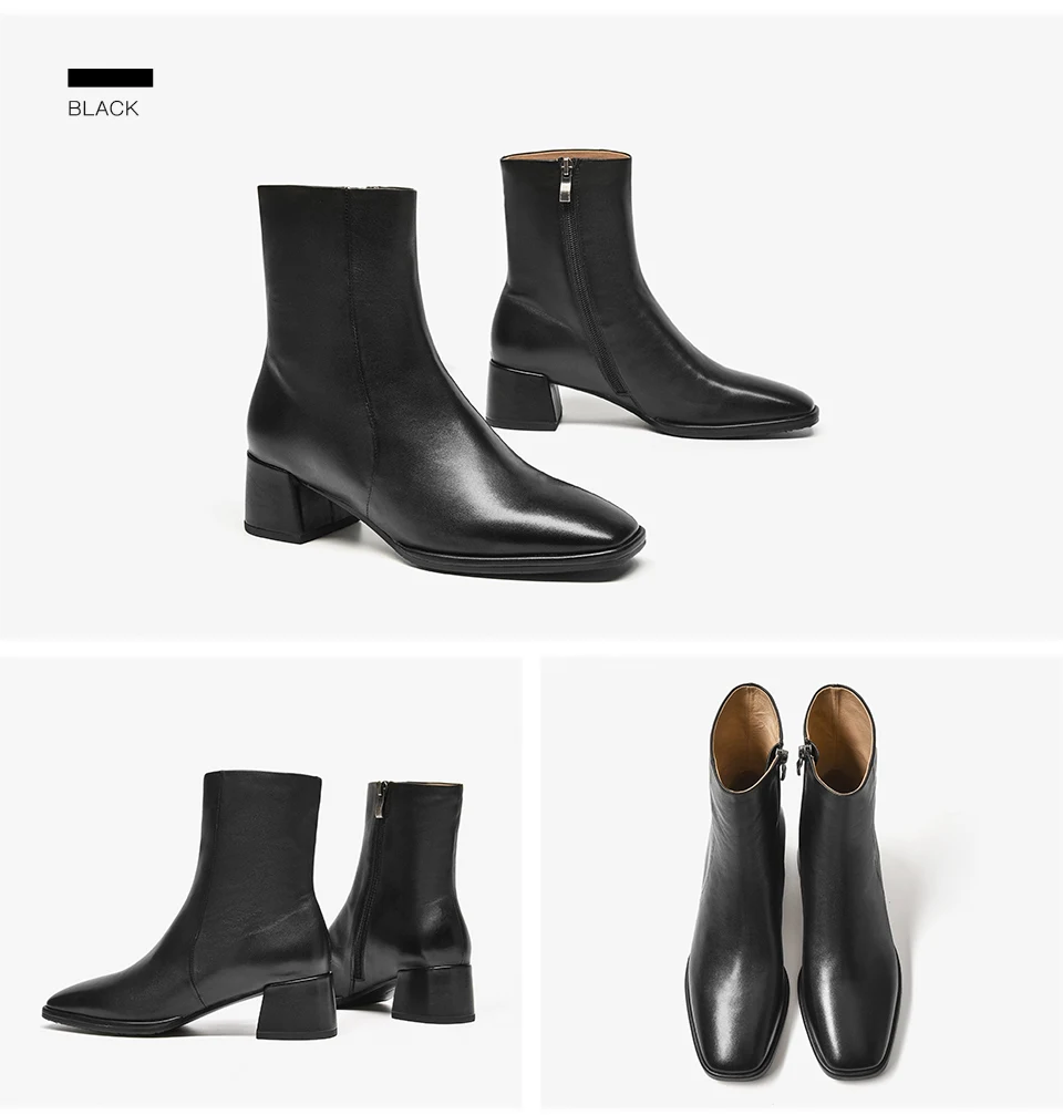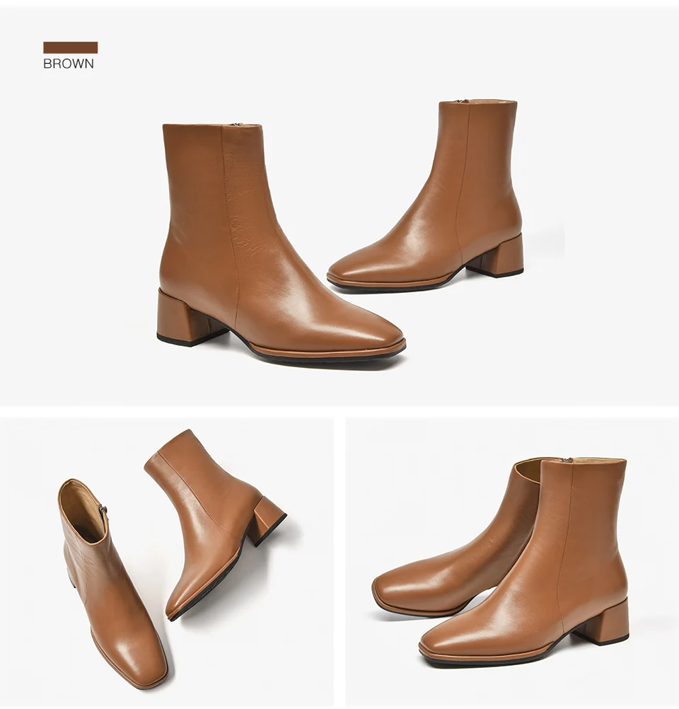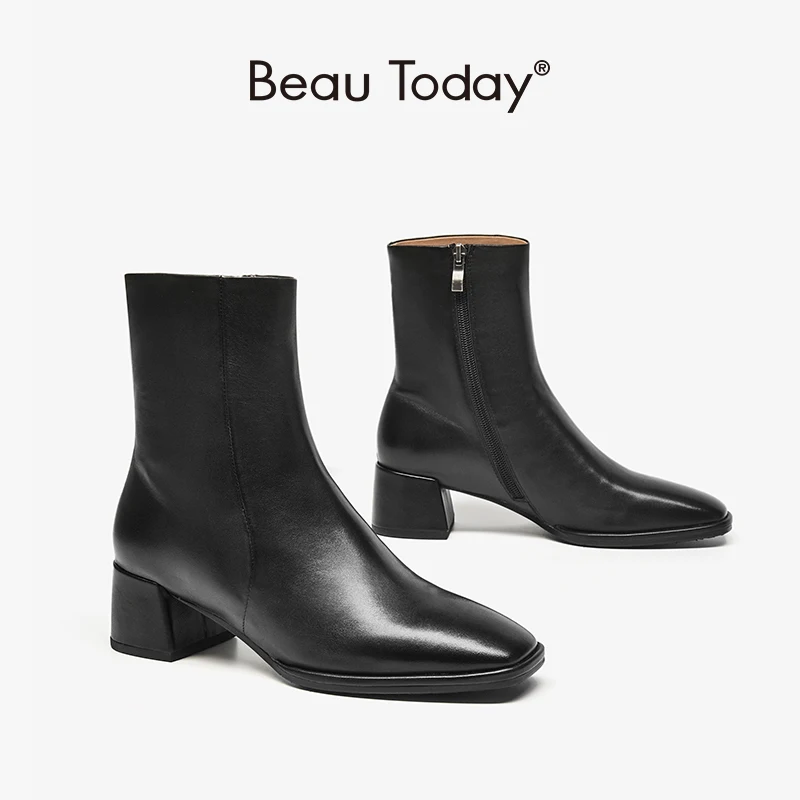 Женские ботильоны из натуральной овечьей кожи, ботинки на среднем каблуке с квадратным носком и боковой молнией, ручная работа BeauToday 03885