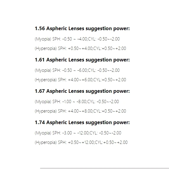 Примечание: линзы по рецепту под одним из ниже двух условий относятся к индивидуальным объективам, фабрика линз должна сделать линзы специально для вас, они просят дополнительную стоимость USD10 или USD20. Спасибо за понимание!