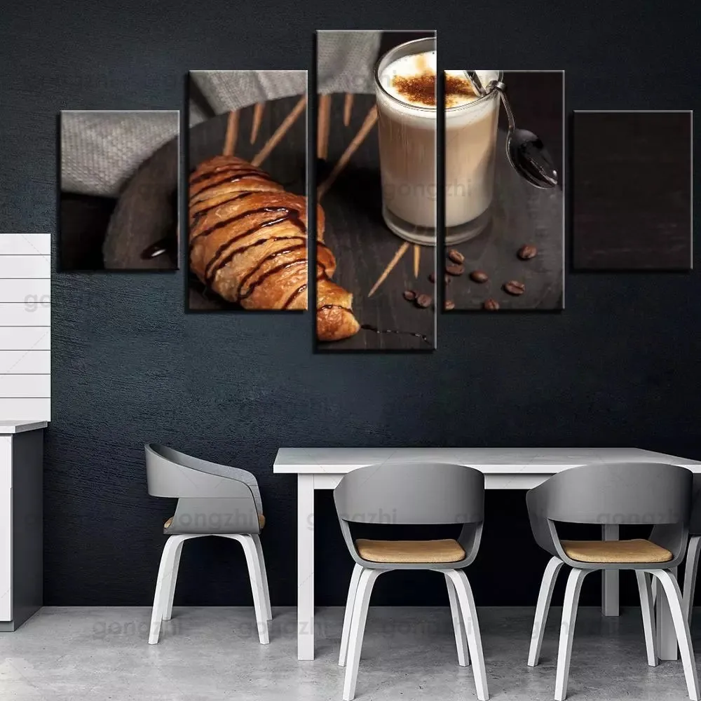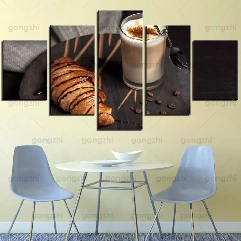 Европейская хлеб Кофе Молоко натюрморт жизнь фотография минималистическая картина без рамки пользовательский водонепроницаемый чернильный Печать холст плакат