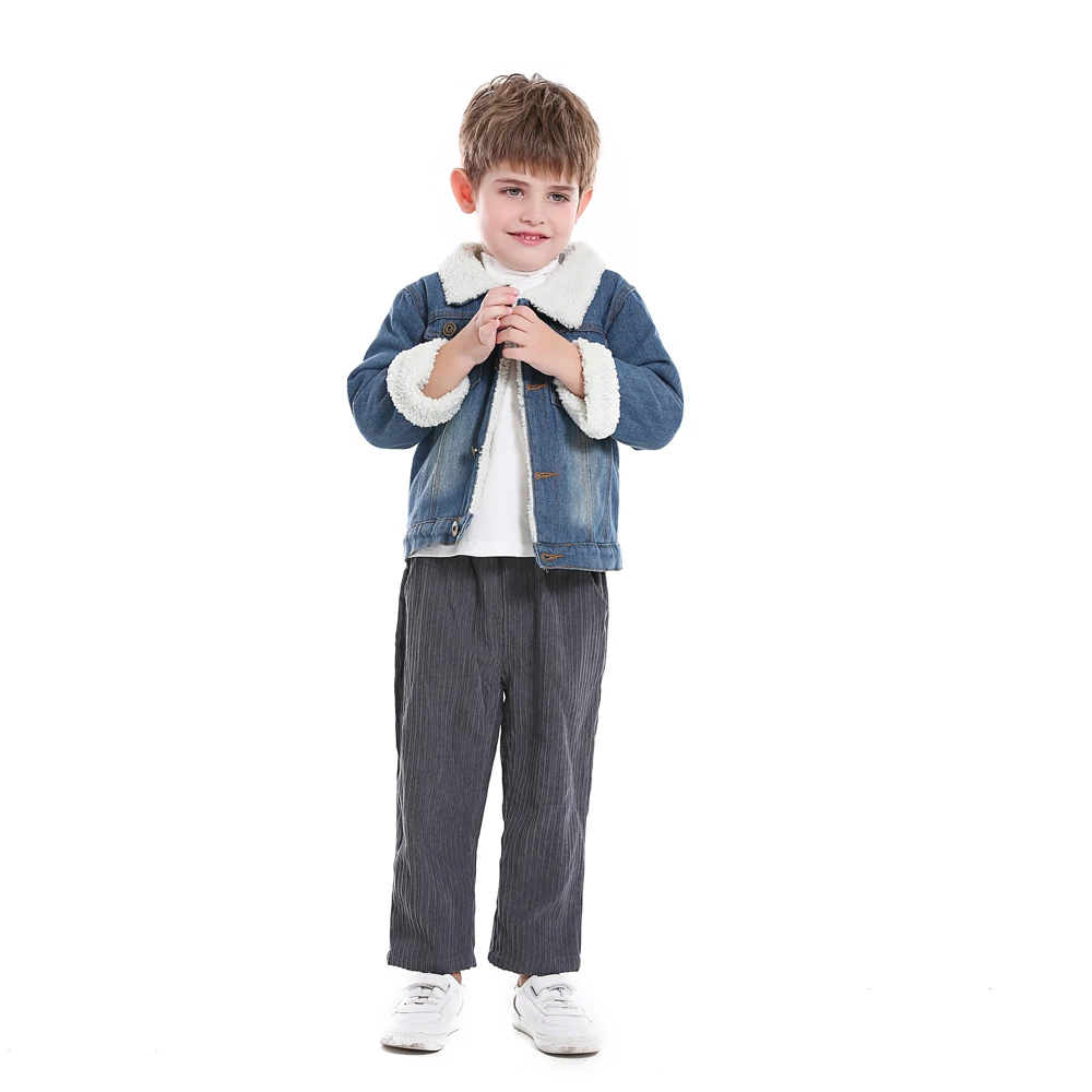 Детская джинсовая куртка с отложным воротником, на флисовой подкладке