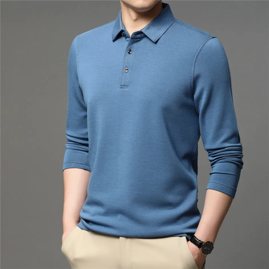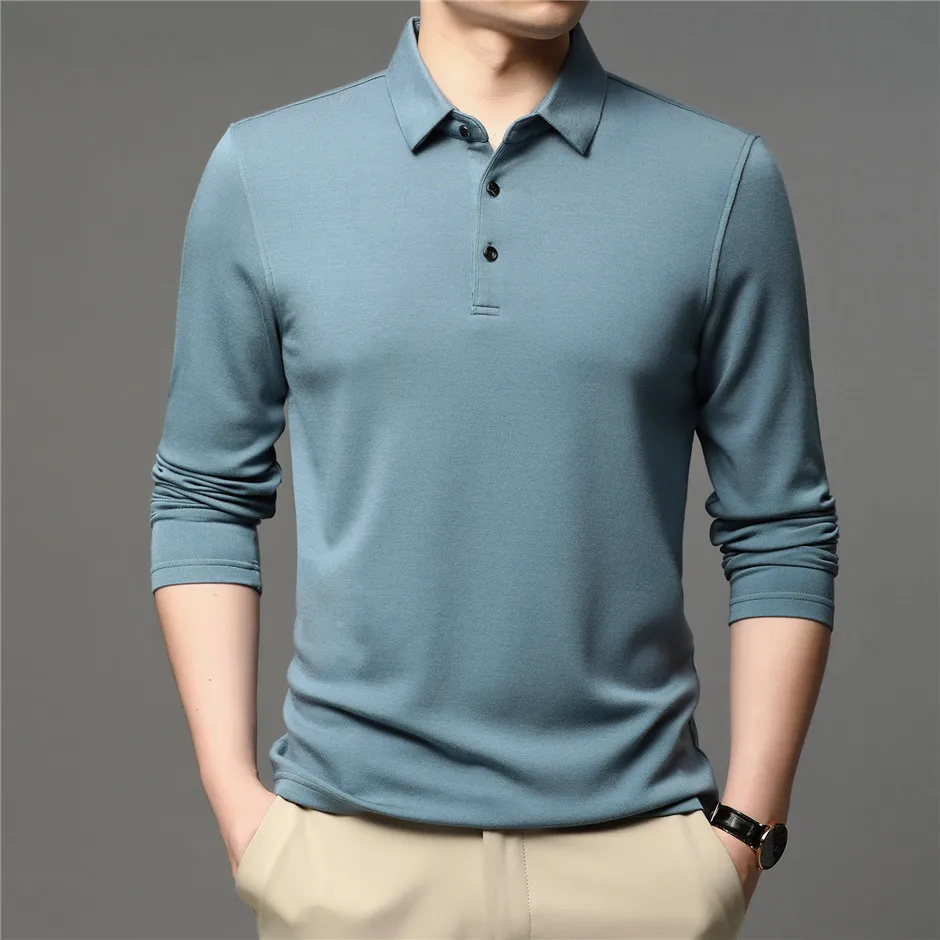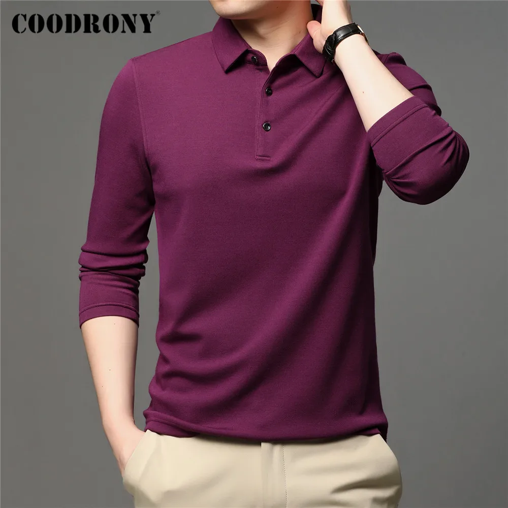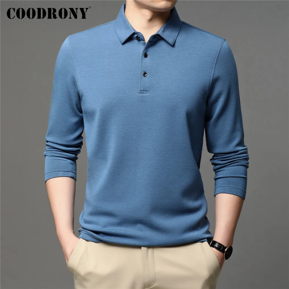 Рубашка-поло COODRONY C5050 Мужская, брендовая однотонная, деловая Повседневная, с длинными рукавами, весна-осень