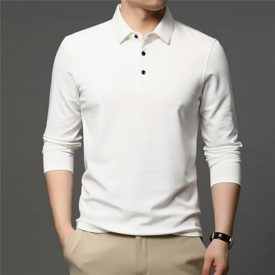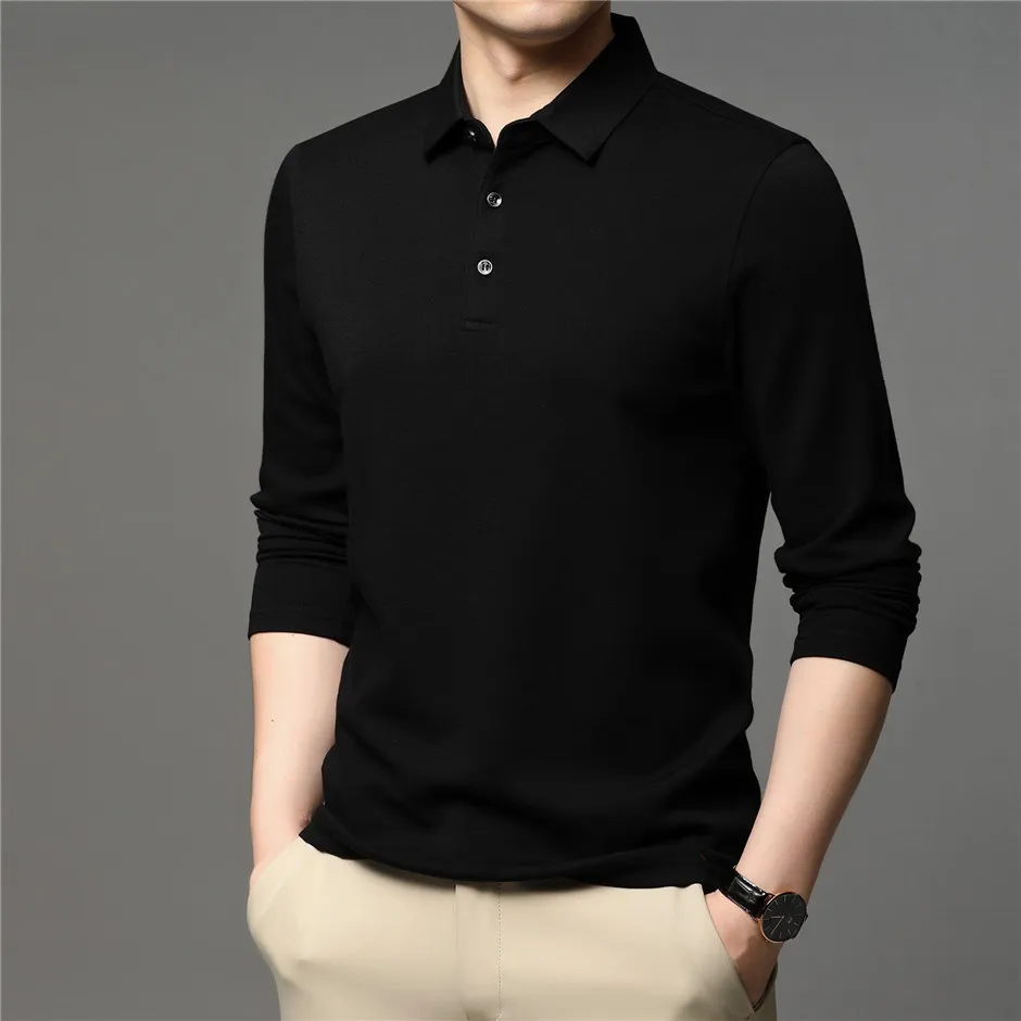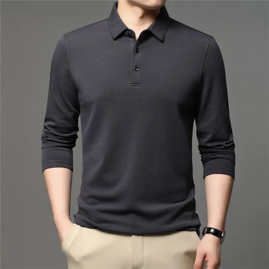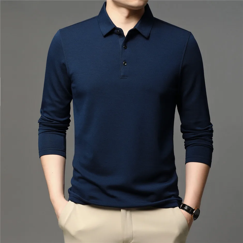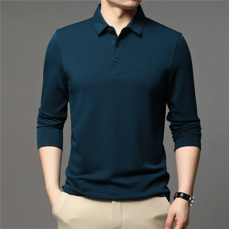 Рубашка-поло COODRONY C5050 Мужская, брендовая однотонная, деловая Повседневная, с длинными рукавами, весна-осень