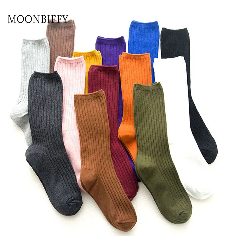 Весенние свободные носки, женские хлопковые вязаные однотонные базовые повседневные женские носки 200 игл в рубчик