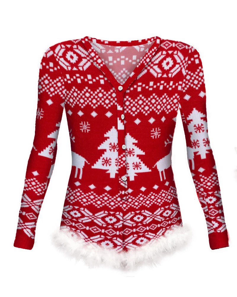 Женское Модное Элегантное пикантное рождественское боди в стиле пэчворк, пушистое боди с пуговицами спереди для отдыха, 2020