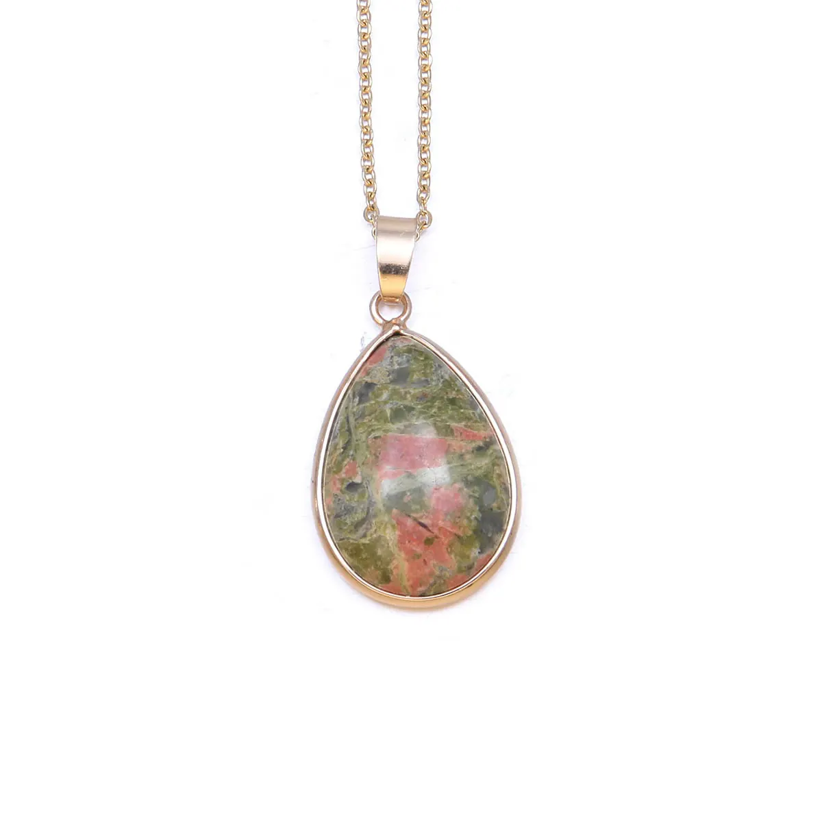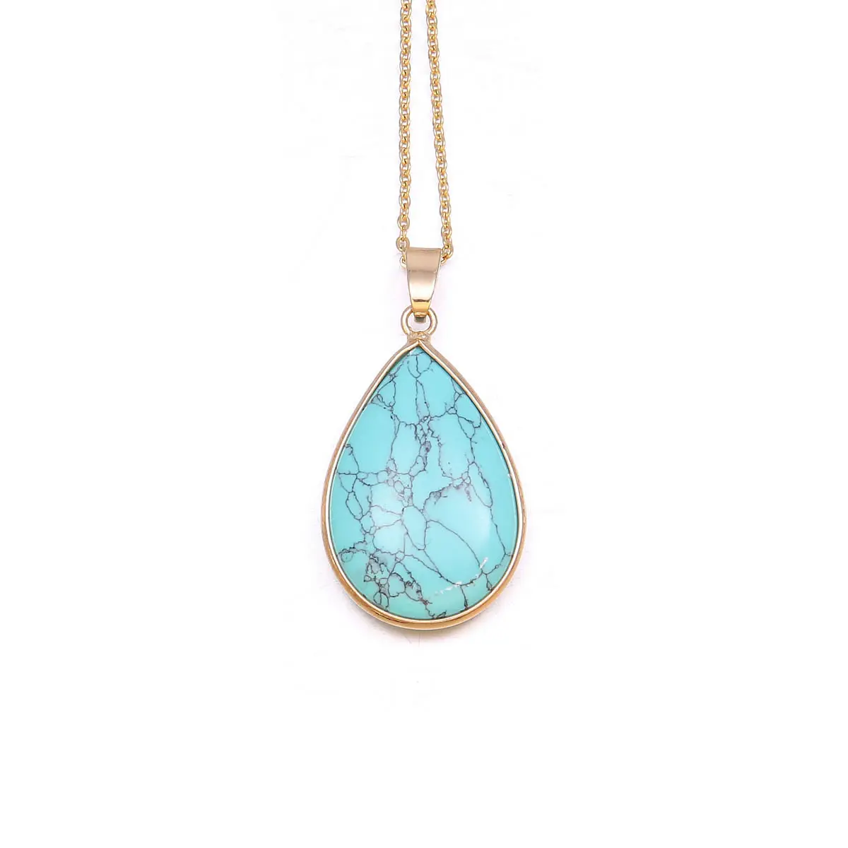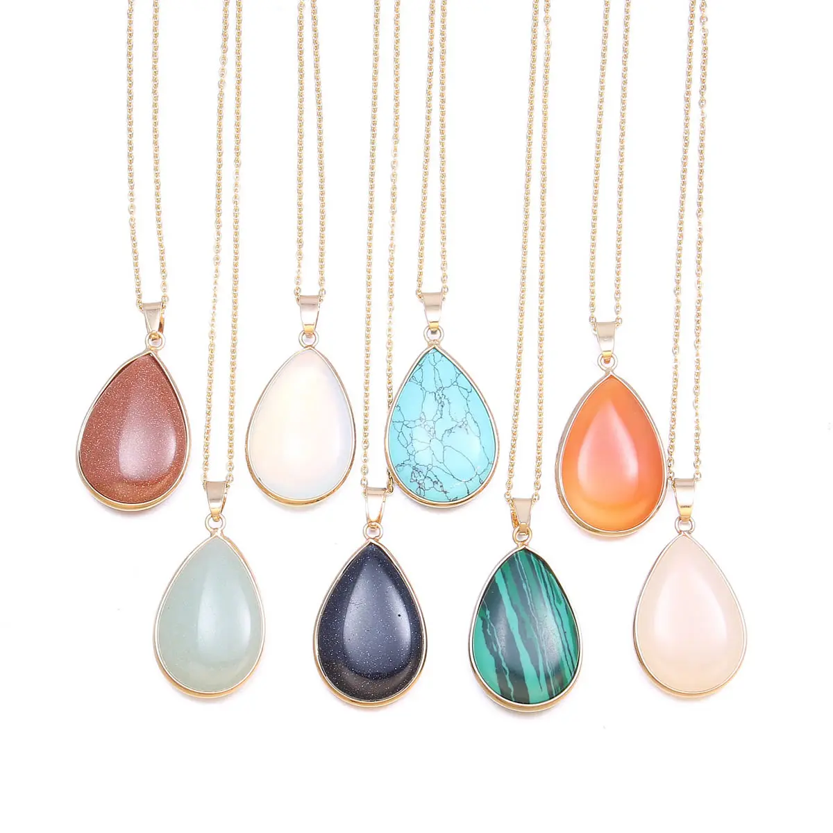 Натуральный камень кулон ожерелье воды подвеска в форме капли ожерелье для женщин ювелирные изделия Длина 50 +, защита от ультрафиолета, 5 см Размеры 25x20 мм, оптовая продажа