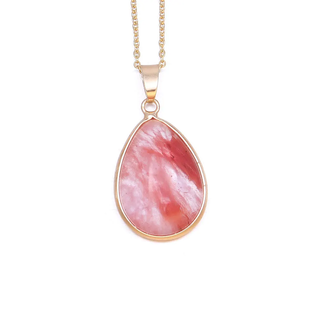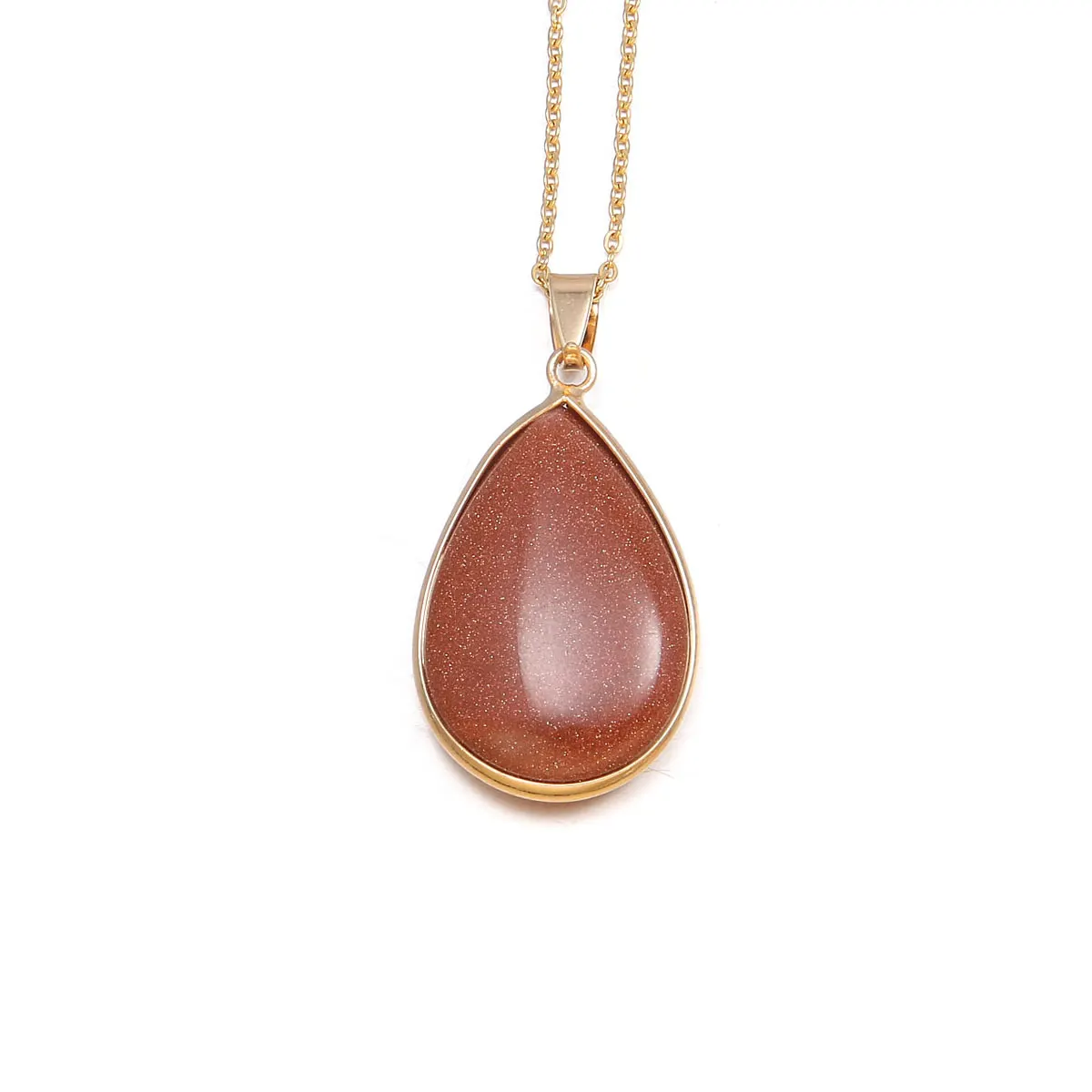 Ожерелье с подвеской из натурального камня, позолоченная Капля воды...