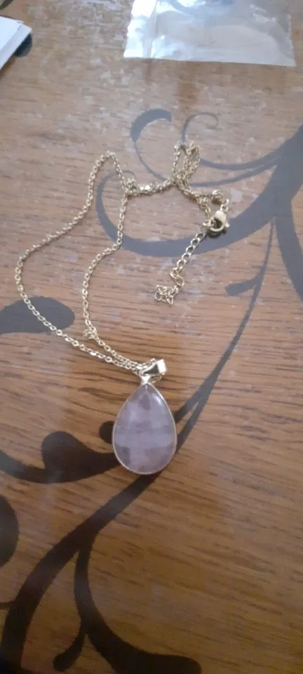Ожерелье из натурального кварца розы, серебристая стальная цепочка ...