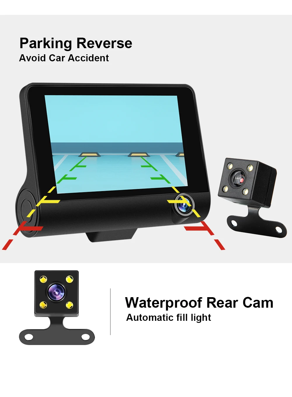 Автомобильный видеорегистратор, 3 камеры s, 4,0 дюйма, с двумя объективами, с поддержкой камеры заднего вида