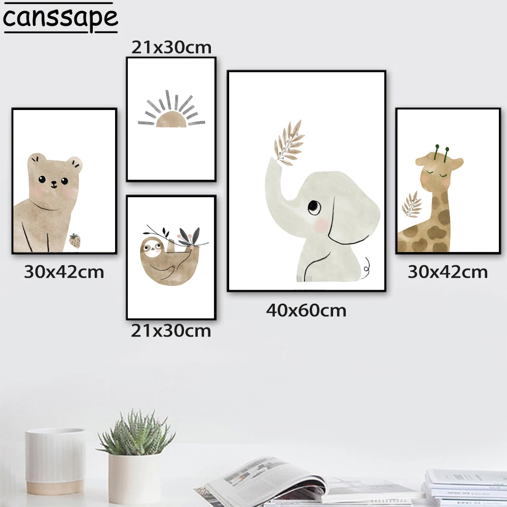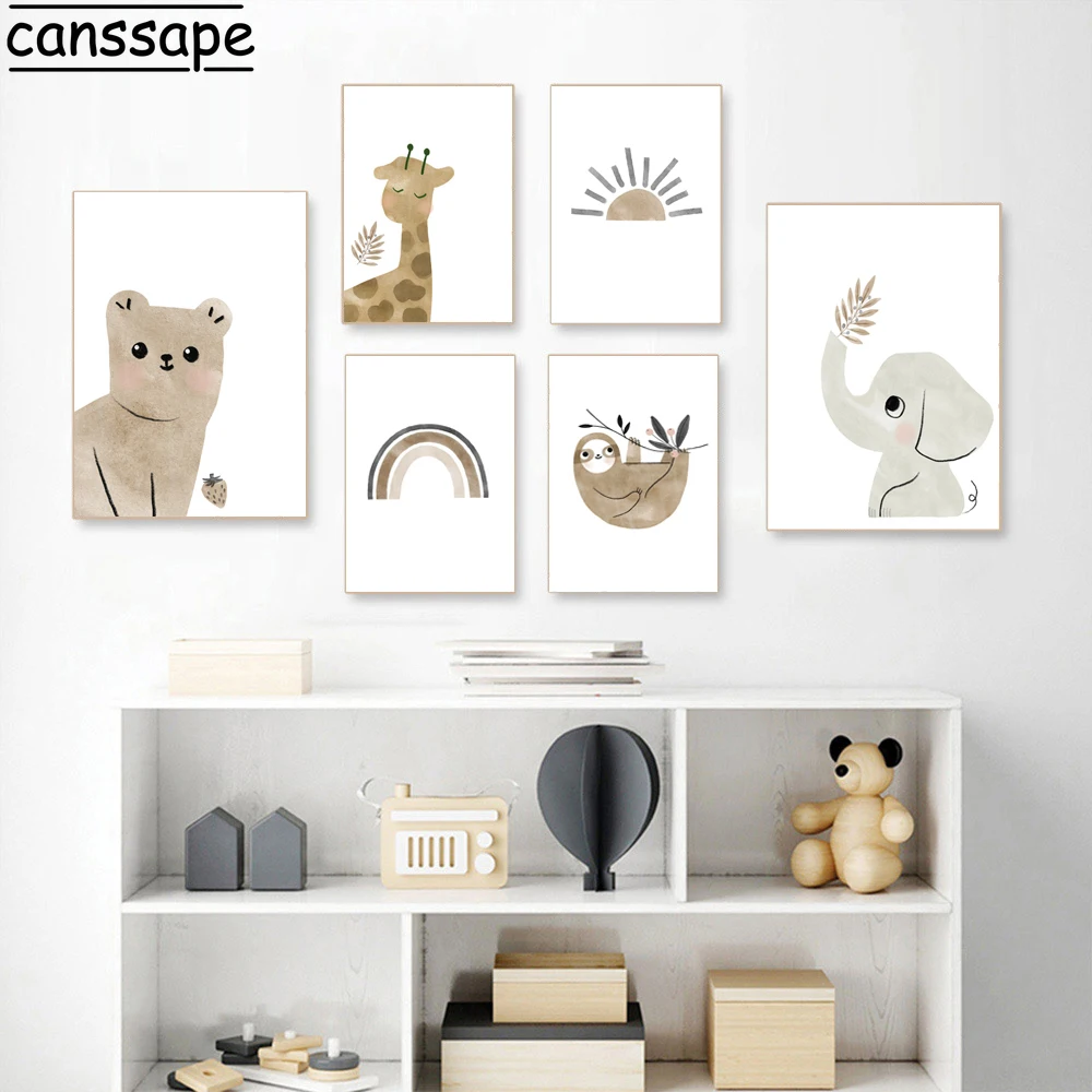 Северных оленей головой животного с принтом Медвежонок, слона, жирафа и других Ленивец холст картины солнце Радуга Wall Art плакат для детской декор для детской комнаты