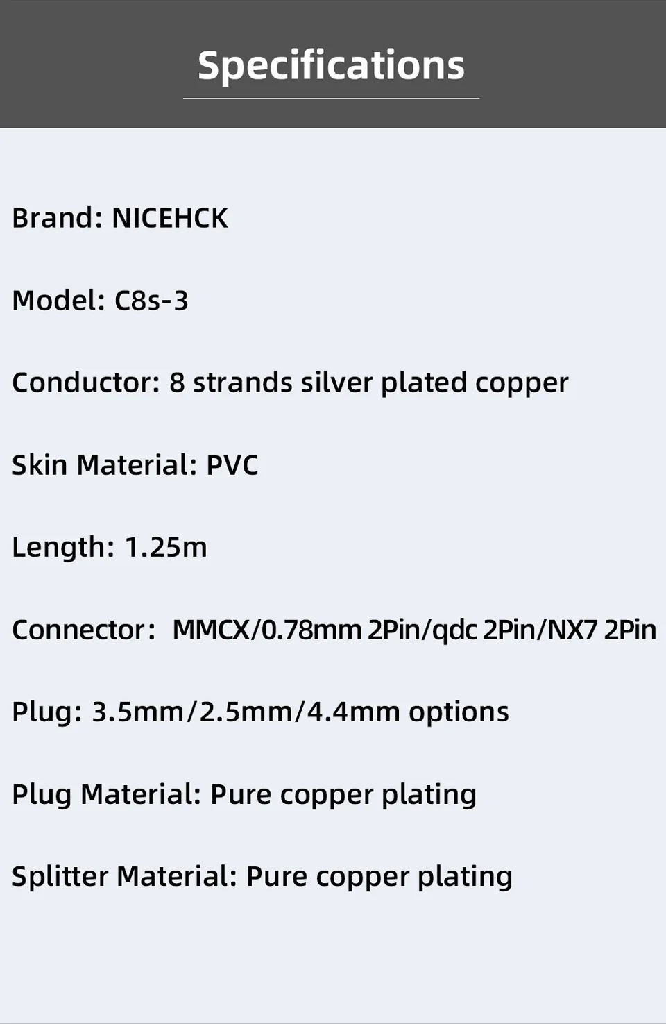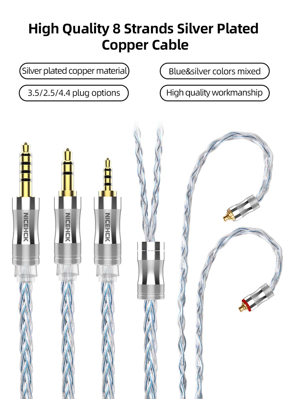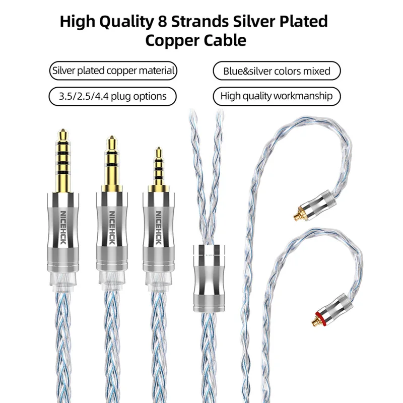 NiceHCK C8s-3 8 Core с серебряным покрытием Медь обновления кабель 3,5 мм2,5 мм4,4 мм MMCXNX7QDC0,78 2Pin для CIEM TANCHJIM KXXS Канас