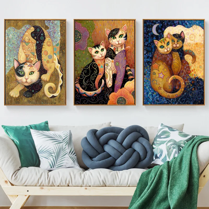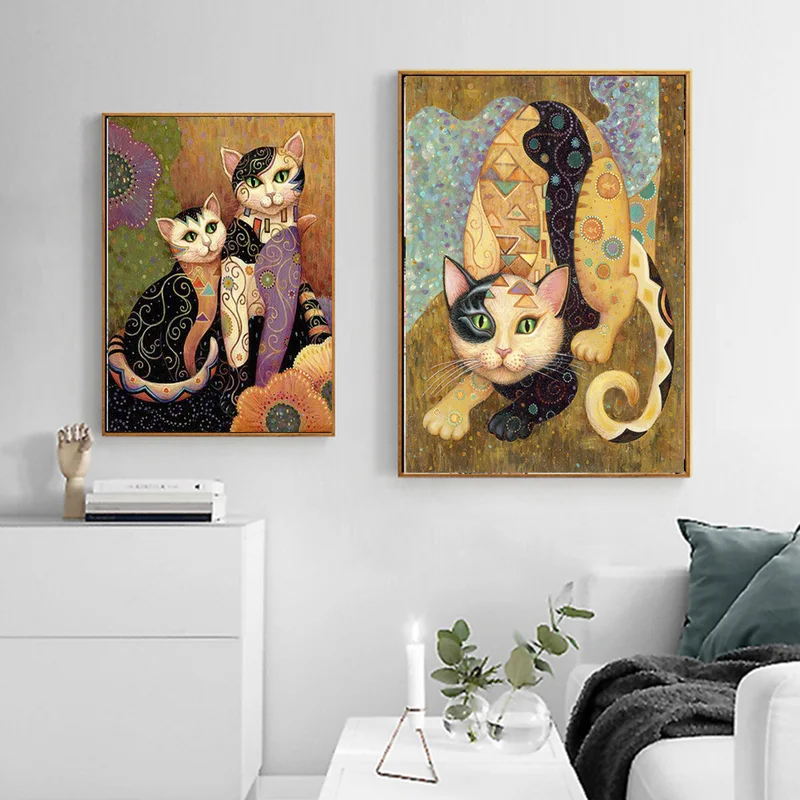 Абстрактная картина Klimt с изображением животных, кота, HD, Картина на холсте, Современный домашний декор, Настенная картина для гостиной без рамки