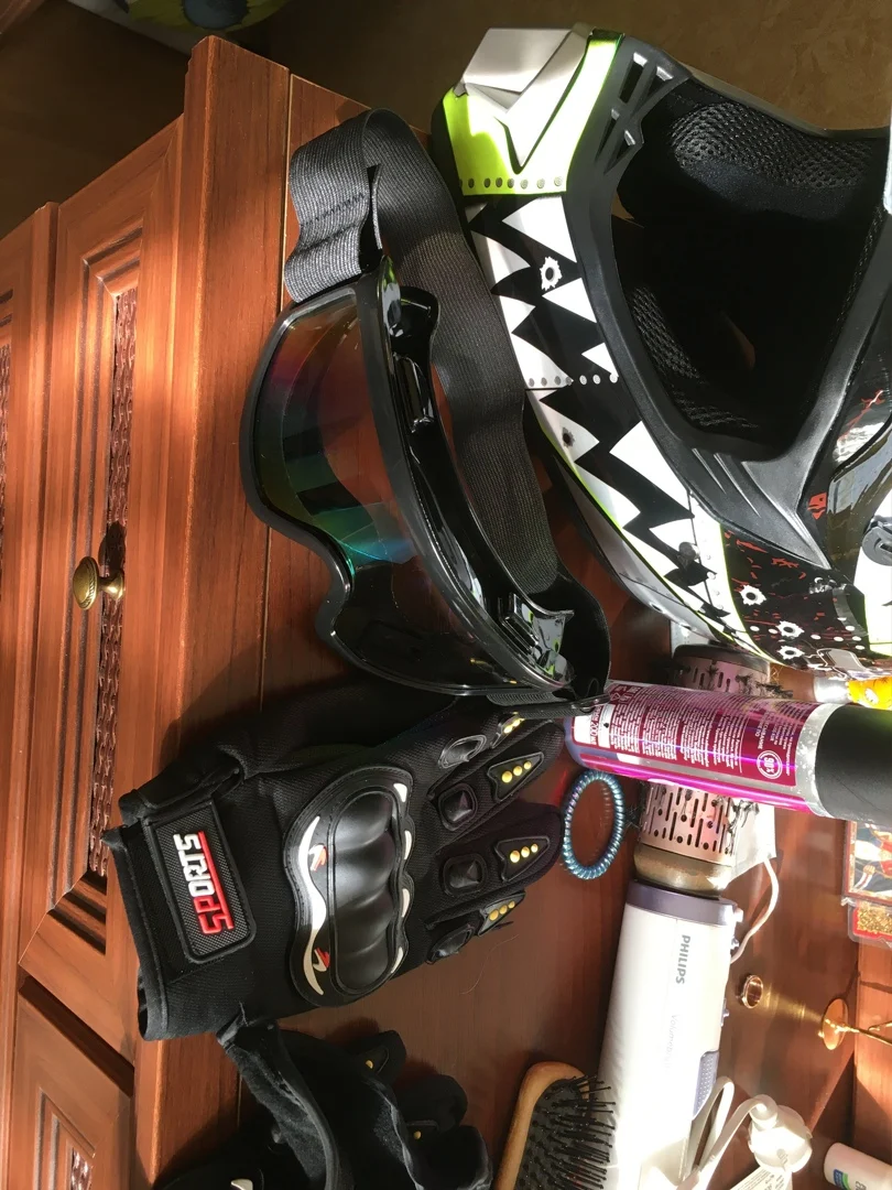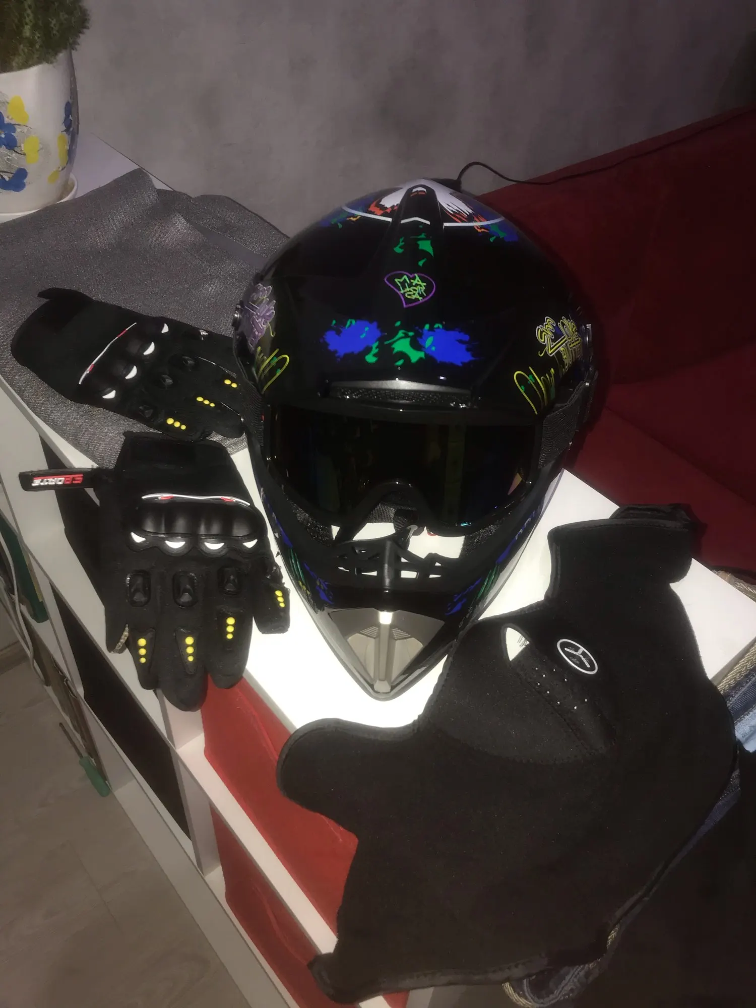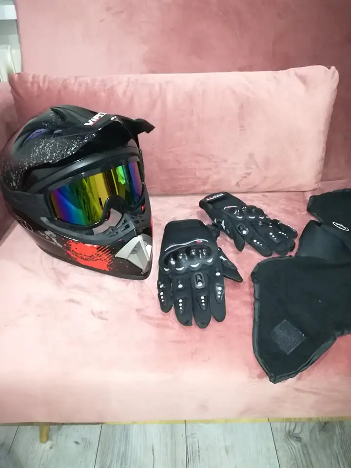 Шлем очень удобный и выглядит очень хорошо. Единственное, что у него есть резина, которая легко снимается. Очки чувствуют себя прекрасно и не тускнеют. Перчатки и трусики не стоят правды, но за эту цену что еще можно попросить.