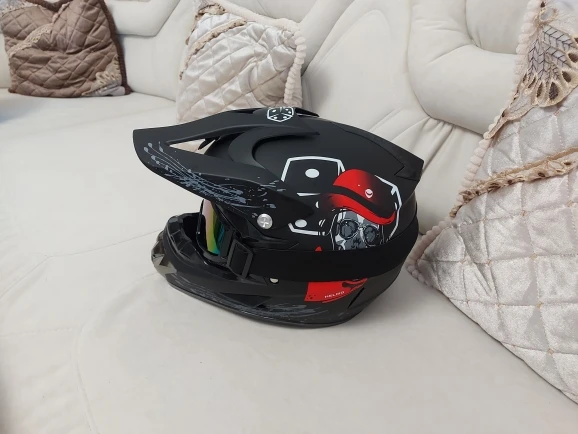 Шлем отличный. Очки , перчатки и маска в подарок! Размер соответствует!!! Сынишка очень доволен! Рекомендую. Брали для катания на квадроцикле. Единственно заказ пришел через 45 дней, но видимо это не вина продавца , а общая проблема доставки из Китая. Продавцу СПАСИБО!!!!! :)