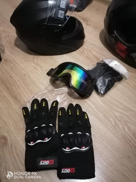 доставка до двери DPD, сам шлем очень легкий, не знаю хорошо или плохо, но фирменный гораздо тяжелее, на перчатках на большом и указательном пальце покрытие для сенсора. В целом все устраивает, брал самый большой, и то получается в притык, рекомендую брать на взрослых самый большой размер,